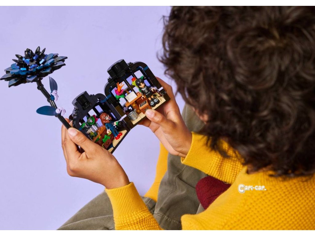 Tajemná květina – Součástí designové stavebnice je černá jiřina z kostek LEGO®, která slouží jako zámek vázy, která obsahuje malá okna zimní zahrady, prostor na hraní uvnitř, nábytek a další prvky