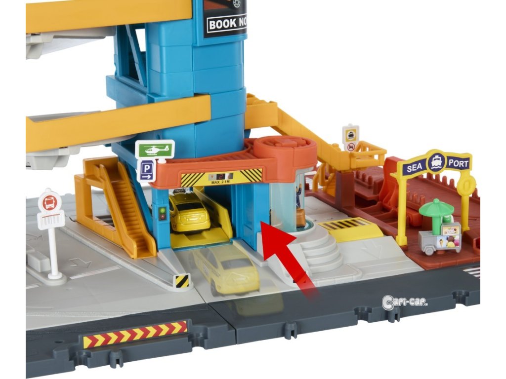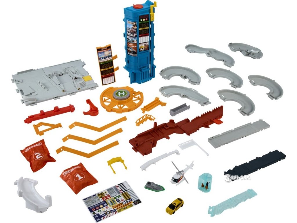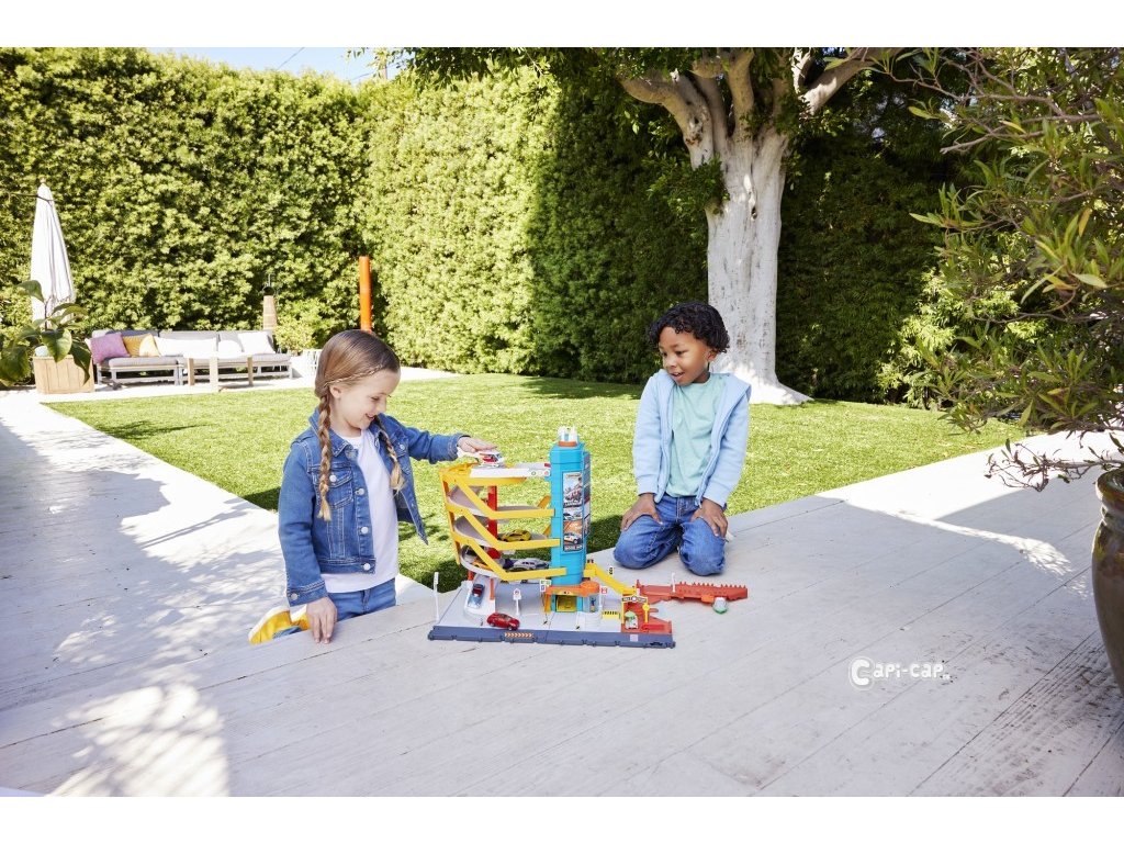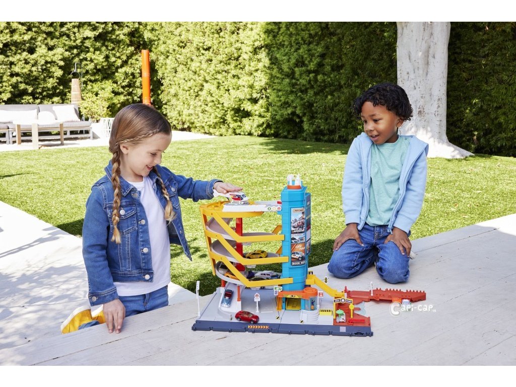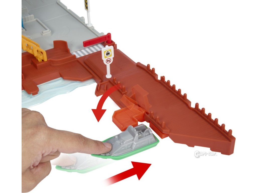 Vydejte se na vzrušující dobrodružství na zemi, ve vzduchu nebo na moři s dopravním centrem Matchbox™. Tento velkolepý herní set obsahuje pětiúrovňovou garáž, přístaviště lodí a přistávací plochu pro vrtulníky a jeho součástí je taxík, loď a vrtulník v měřítku 1:64 pro realistické vyprávění příběhů. Zajeďte k nástupní zóně pro cestující, abyste spustili otáčecí dveře a odhalili přijíždějící pasažéry. Vyjeďte výtahem poháněným dětmi do parkovacího objektu, který pojme 12 angličáků a když vrtulník přistane na heliportu, pošle vozidla přes garáž dolů a ven do ostrého provozu. V námořním přístavu se most vyklopí a vytvoří molo, čímž rozšíří scénu o další příběhové možnosti. Barvy a provedení se mohou lišit.