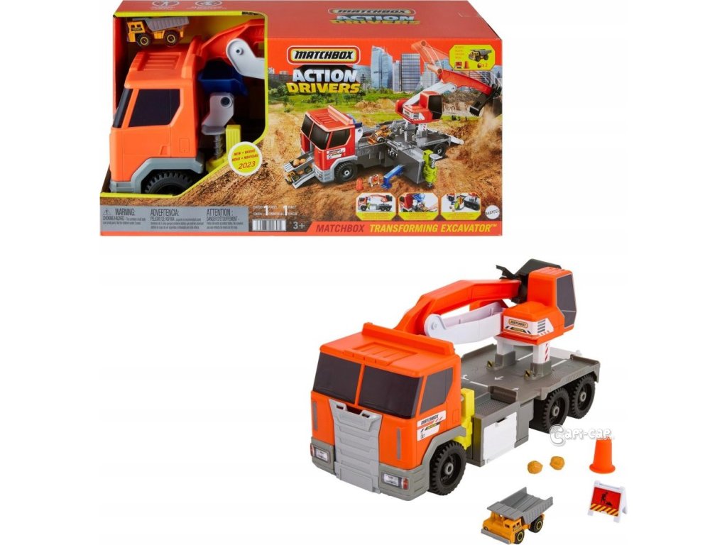Matchbox™ Stavební náklaďák s bagrem a doplňky je velké vozidlo s realistickými detaily a skvělými funkcemi aktivovanými dětmi a autíčky. Součástí balení je také jedno menší nákladní auto Matchbox™. Stavební náklaďák s bagrem je připojitelný k setům z řady Matchbox™ Action Drivers (prodávají se samostatně). Barvy a vzhled výrobku se mohou lišit.