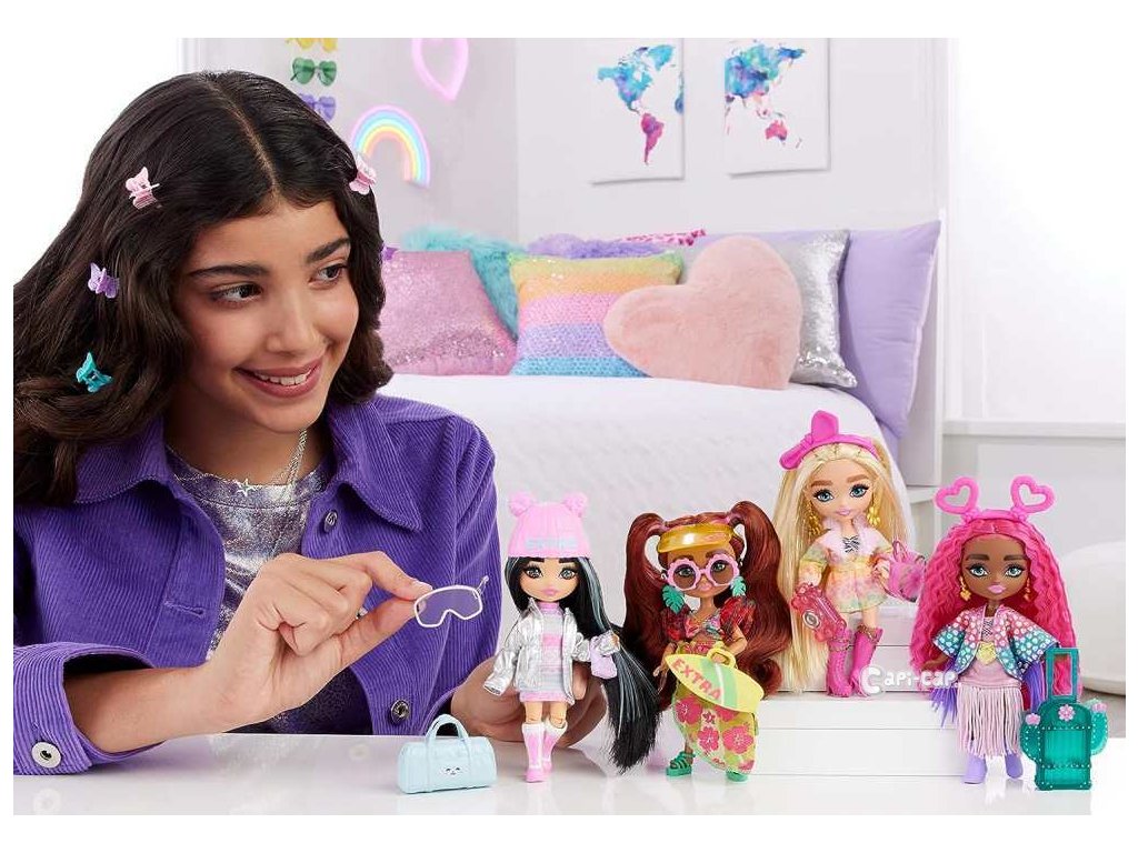 Jsou stejně extravagantní jako panenky Barbie® Extra, jen v miniaturizovaném provedení. Tyto 14 cm vysoké panenky jsou malé, ale jsou to velké osobnosti s hravým vzhledem. Každá panenka má EXTRA dlouhé vlasy, stylové módní oblečky a luxusní doplňky. Díky kloubům v loktech a kolenou jsou panenky připraveny pózovat! A se stojánkem, který je dodáván ke každé panence Barbie® Extra Minis, si děti mohou vytvořit vlastní výstavku těchto panenek!