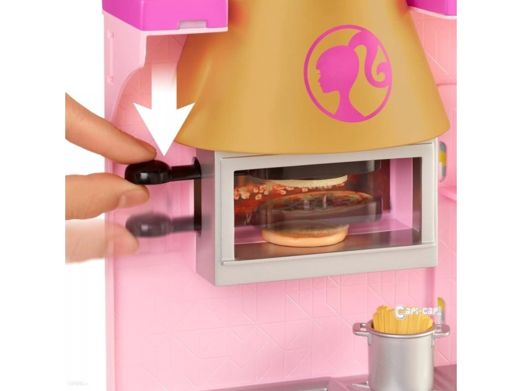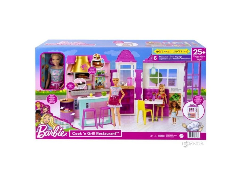 Malí gurmáni si s bábikou a hernou sadou Barbie® Reštaurácia herný set ukuchtí veľa zábavy a príbehov! Táto herná súprava z prostredia rýchleho občerstvenia má moderný farebný dizajn, šesť hracích plôch a obsahuje celkom viac ako 30 dielov. Zapáli tak v deťoch iskru pre nekonečnú zábavu plnú fantázie. Bábika Barbie® je pripravená na deň plný práce aj hrania v šatách, roztomilé ružovej zástere a kuchárskej čiapke. Deti jej môžu pomôcť prijímať objednávky pri výdajnom okienku alebo usadiť až štyroch hostí do vnútorného posedenia pri pulte, prípadne do boxu v záhradke. Potom môžu zamieriť do kuchyne obracať burgre na otočnom grile, aranžovať zákusky na otočnom dezertnom pultíku alebo dať pizzu do pece a pozerať sa, ako mení farbu, keď je „upečená“! Vďaka celkom viac ako 30 dielom a mnohým príležitostiam na rozprávanie príbehov sa môžu deti vo veku od 3 rokov hrať s bábikou Barbie® na kuchárku, servírku, zákazníčku alebo na všetky tri naraz!