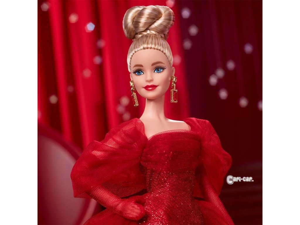 Panenka Barbie k 80. výročí od Mattela, je úžasný suvenýr, který ctí odkaz společnosti, jež inspirovala generace. V třpytivých šatech, zdůrazněných rukávy s mašličkami a tylovým lemem, je připravená na červený koberec. Rubínové lodičky doplňují její oslnivý vzhled, zatímco červené nehty a visací náušnice se zlatým „M“ vzdávají poctu staromódnímu logu Mattela.