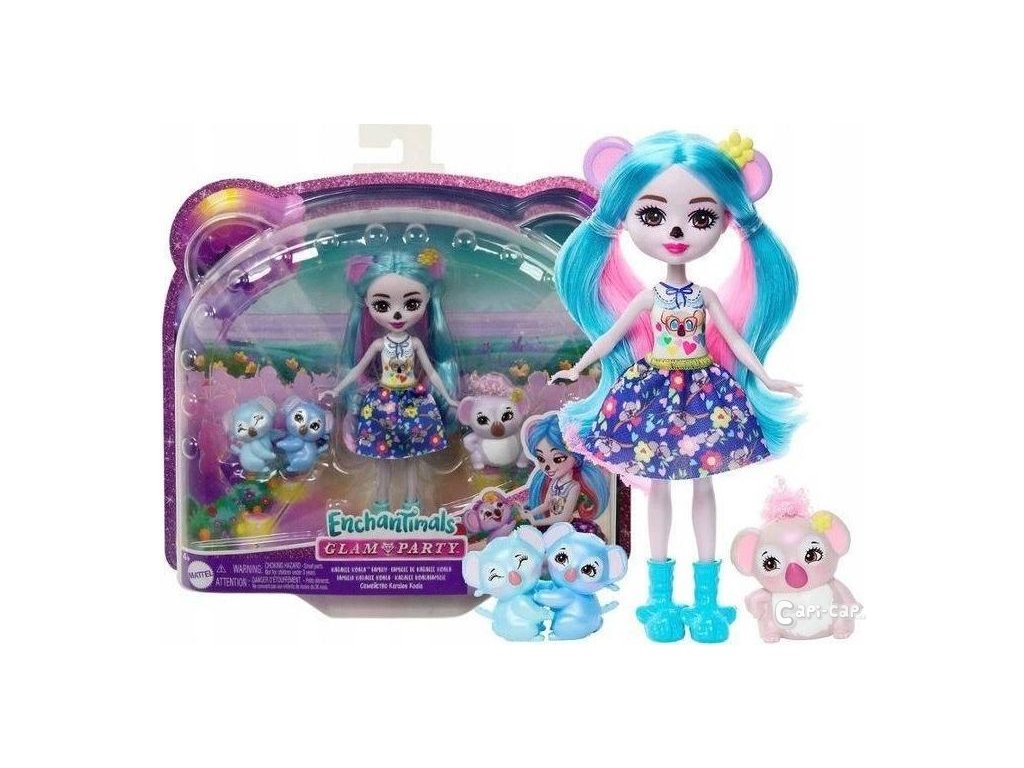 Tato kolekce Enchantimals je inspirována skupinou rozkošných přátelé, kteří se vždy skvěle baví se svými milovanými zvířaty. Je čas na největší módní událost sezóny a všichni jsou zváni! Panenka Karalee Koala, figurky domácího mazlíčka Bloke a sourozence koaly prožívají spolu nádherná dobrodružství. Karalee vypadá krásně roztomile top a odnímatelnou sukni, zatímco ona a její rodina hledají koaly dobrodružství. Děti budou milovat jedinečné pouto, které tito přátelé sdílejí Enchantimals a budou chtít posbírat všechny panenky.