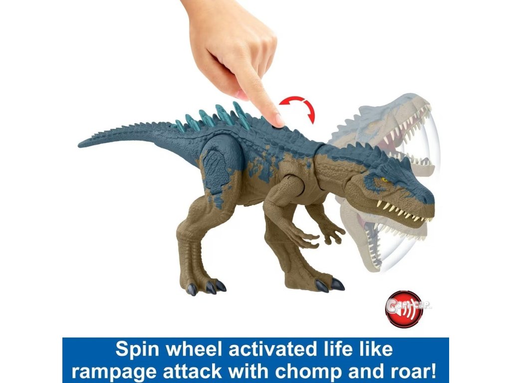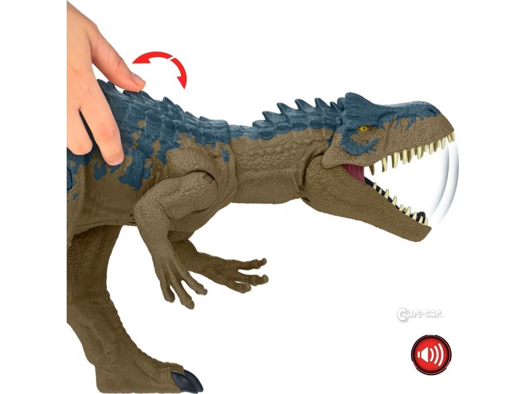 Otočný prvek na hřbetě dinosaura aktivuje plynulý realistický pohyb – divoký útok tlamou zdůrazňovaný řevem. Tento dinosaurus je připraven k boji – stačí stisknout tlačítko na ocase, aby se zvedly hroty na ocase a hřbetě. Nechte se okouzlit texturou této figurky plnou detailů (43 cm) pro umístění do různých póz a dekorací odkazujících na tropické prostředí.