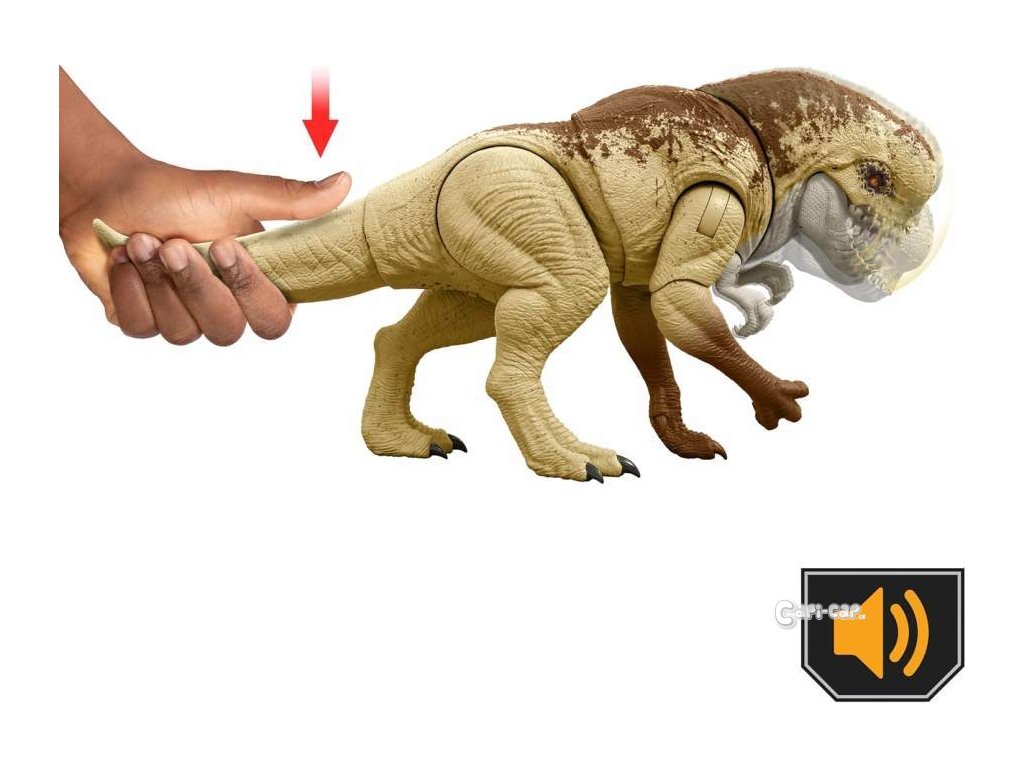 Připravte se na dinosauří akci s touto figurkou z Jurského světa! Otočte ocasem pro děsivý útok, stiskněte tlačítko a spustíte rachot, řev i chroupání. Navíc můžete naskenovat tajný kód v aplikaci a odemknout digitální dobrodružství! Barvy a vzhled se mohou lišit.
