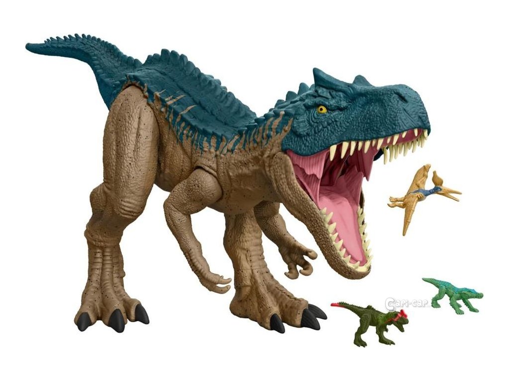 Allosaurus dokáže pohltit celou řadu dinosaurů skrz svou široce otevřenou čelist! Chcete-li uvolnit spolykanou kořist, uvolněte žaludek a začněte znovu. Tento masivní masožravec je skvělým dárkem pro milovníky dinosaurů od 4 let.