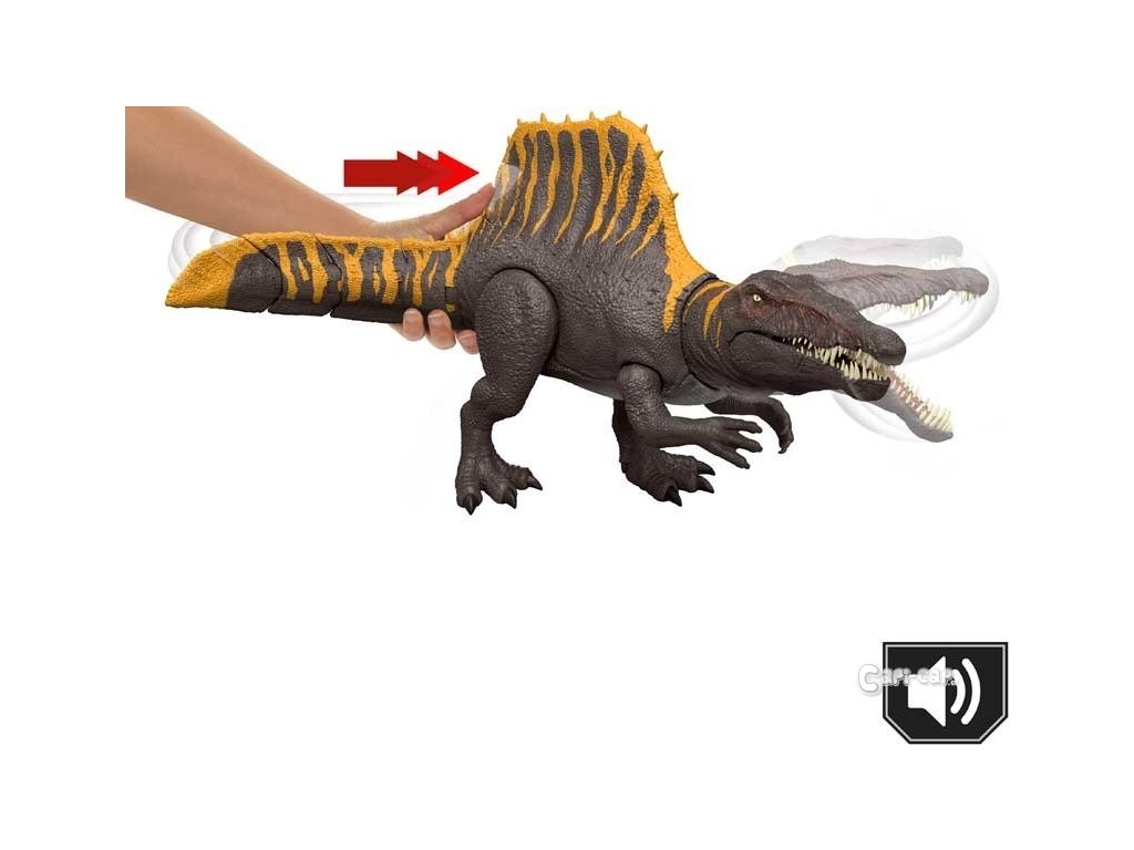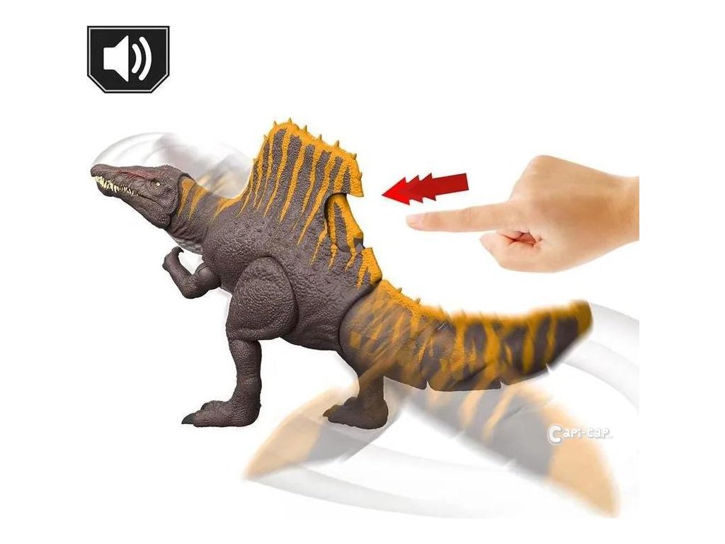 Připravte se na akci s mohutným Spinosaurem z Jurského světa! Tento dinosaurus přináší realistické zvukové efekty a útočnou akci, díky které ožívají prehistorické bitvy přímo ve vaší sbírce. Perfektní hračka pro malé i velké fanoušky dinosaurů! Barvy a provedení se mohou lišit.