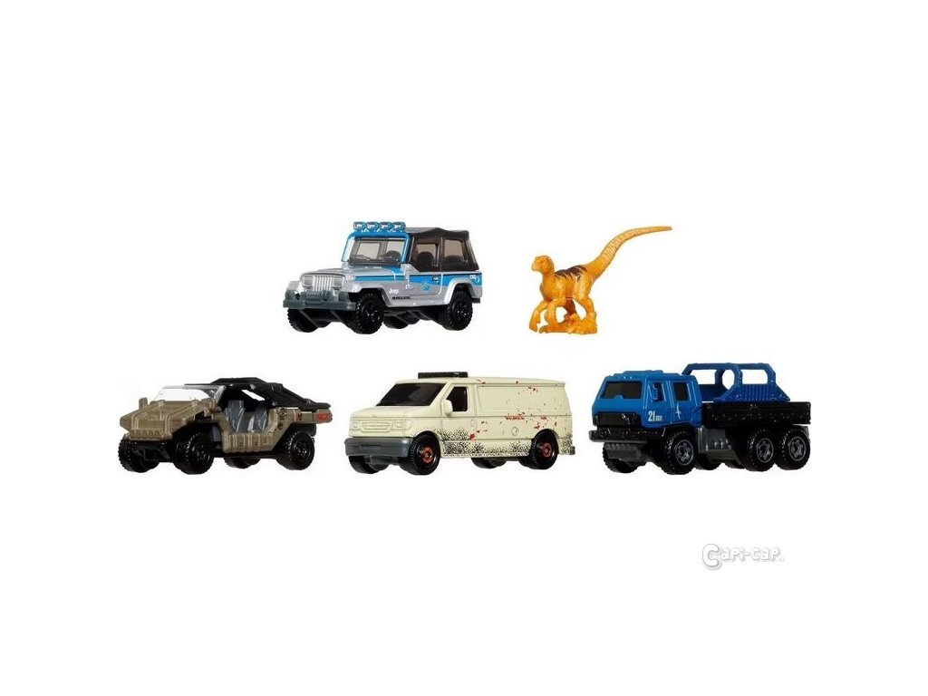 Mattel Matchbox™ Jurský svět 4 ks angličák a dinosaurus Velociraptor