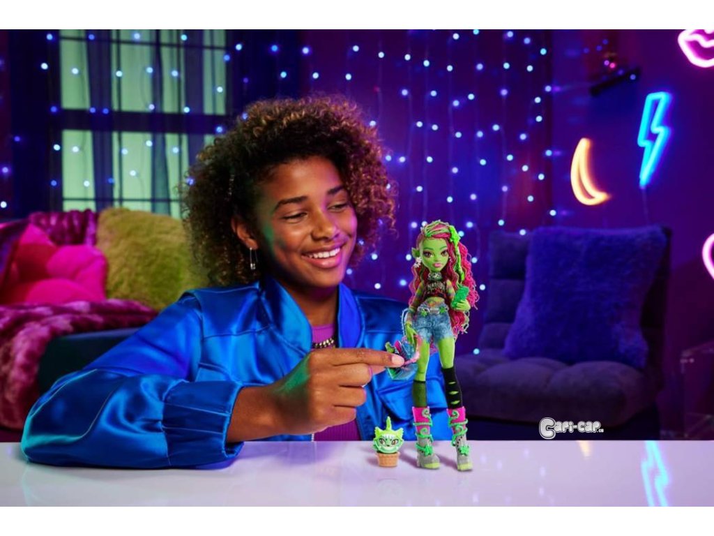 Kromě děsivě cool oblečení přichází panenka Venus McFlytrap se svým strašidelně roztomilým mazlíčkem Chewlianem a spoustou strašidelných doplňků!