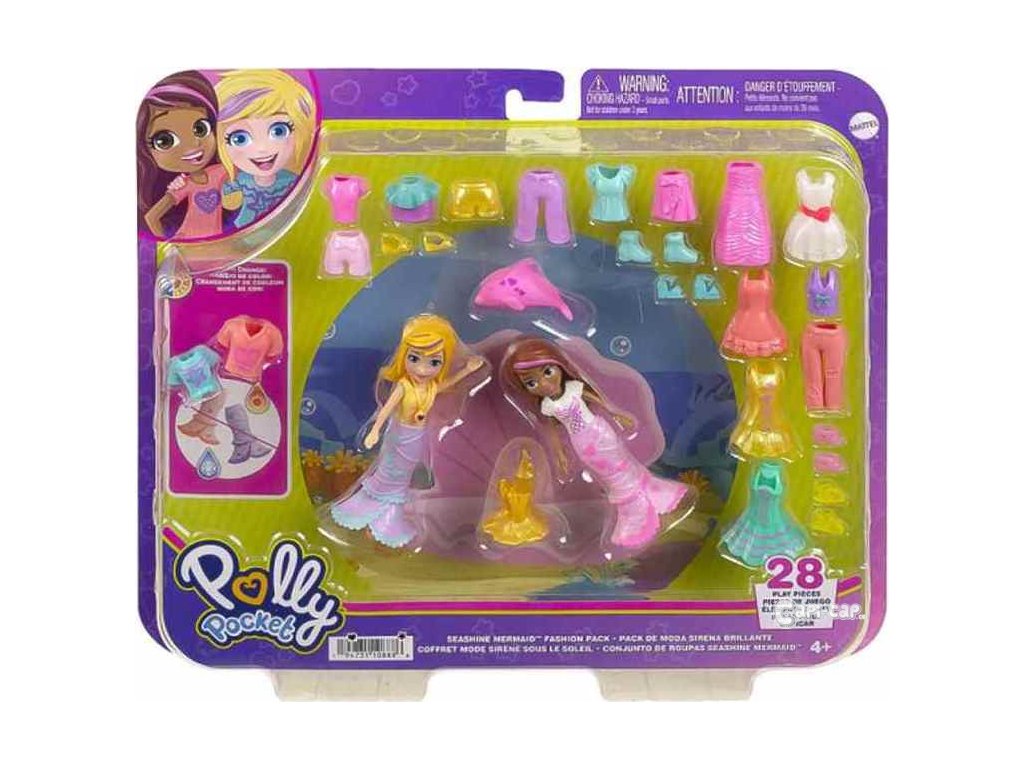 Tato sada s tematikou mořské panny obsahuje dvě panenky a 25 módních kousků -- dva doplňky mají změnu barvy! Milovníci módy je mohou všechny posbírat, aby mohli kombinovat oblečení na cestách.