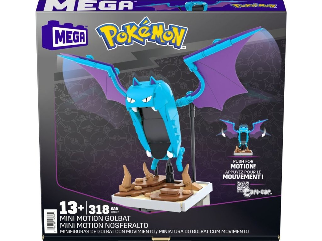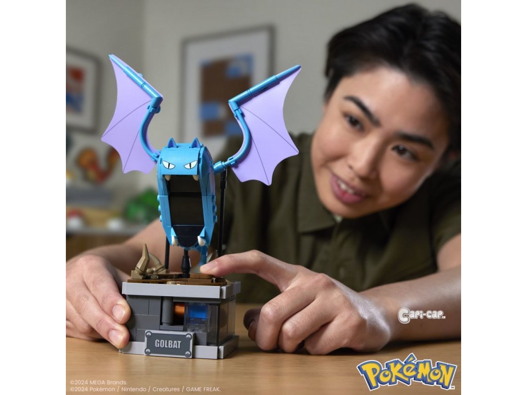 Pohyblivé stavební sety Pokémonů jsou nyní k dispozici v podobě miniatur. Postavte model a stiskněte skryté tlačítko, abyste viděli, jak Golbat mává křídly. Tento model je vysoký přibližně 13 cm.