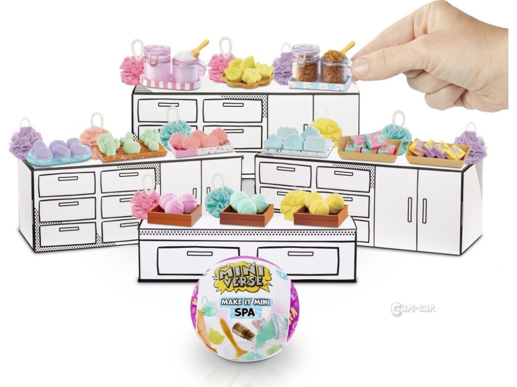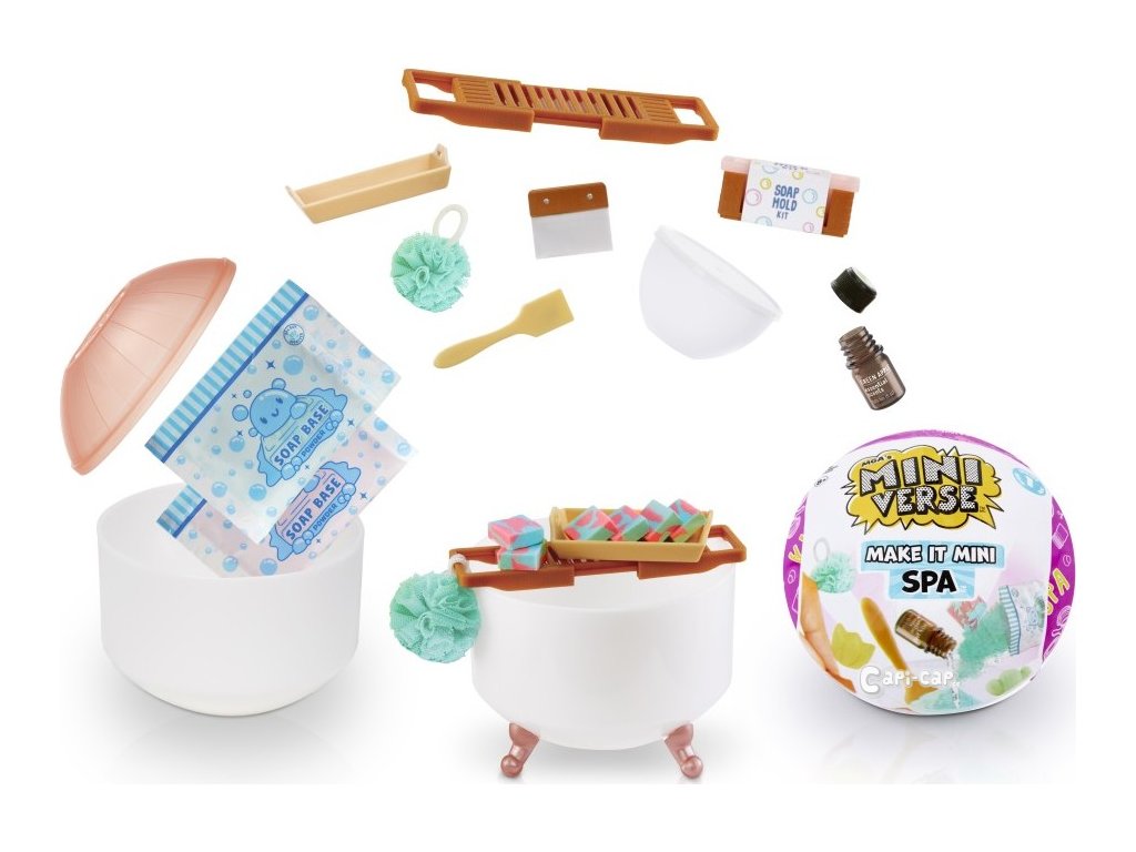Mini hračky…VELKÁ překvapení! Udělej to! Vystav to! Rozbal rozkošné pomůcky pro zdraví a krásu ve formě mini replik. Jsou tak miniaturní, ale i přesto s neuvěřitelně realistickými a funkčními detaily! V každém balení je dost ingrediencí na výrobu různých koulí s pěnou do koupele, scrubů, mýdel nebo solí do koupele. Vše je krásně navoněné a skutečně funkční. Obal vypadá jako malá vana.