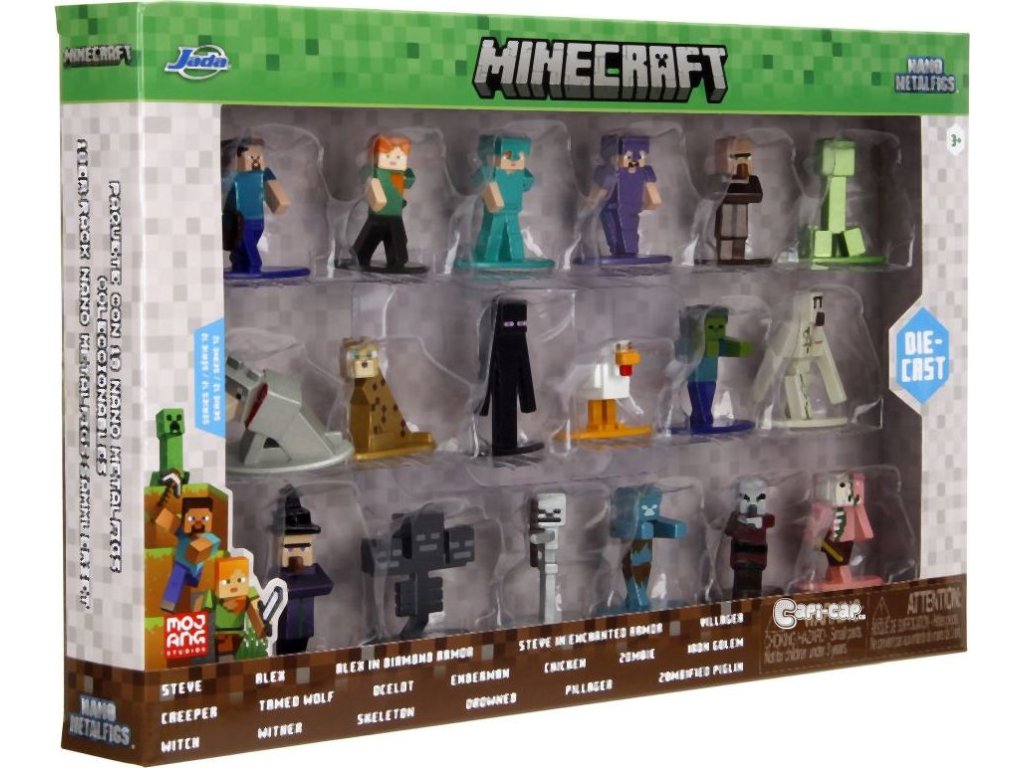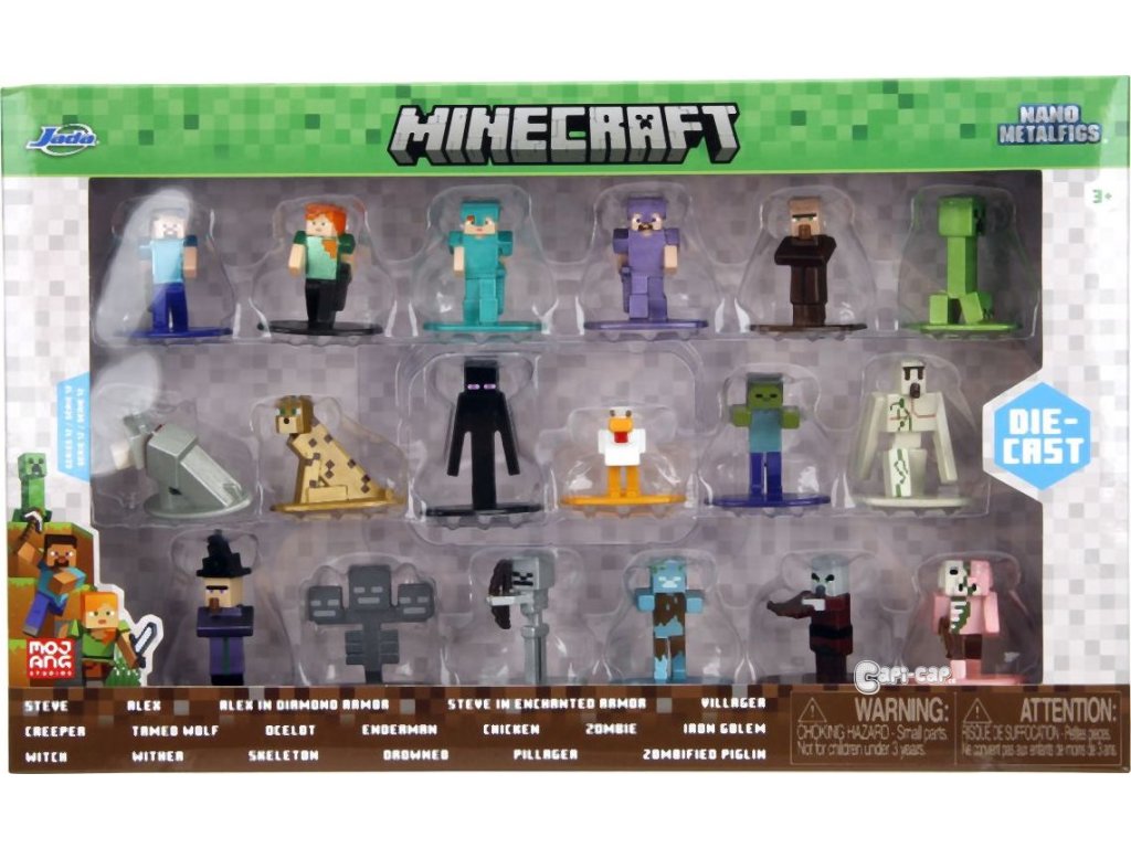 Kovové sběratelské nanofigurky Minecraft, multipack 18 ks. Výška figurky 4 cm.