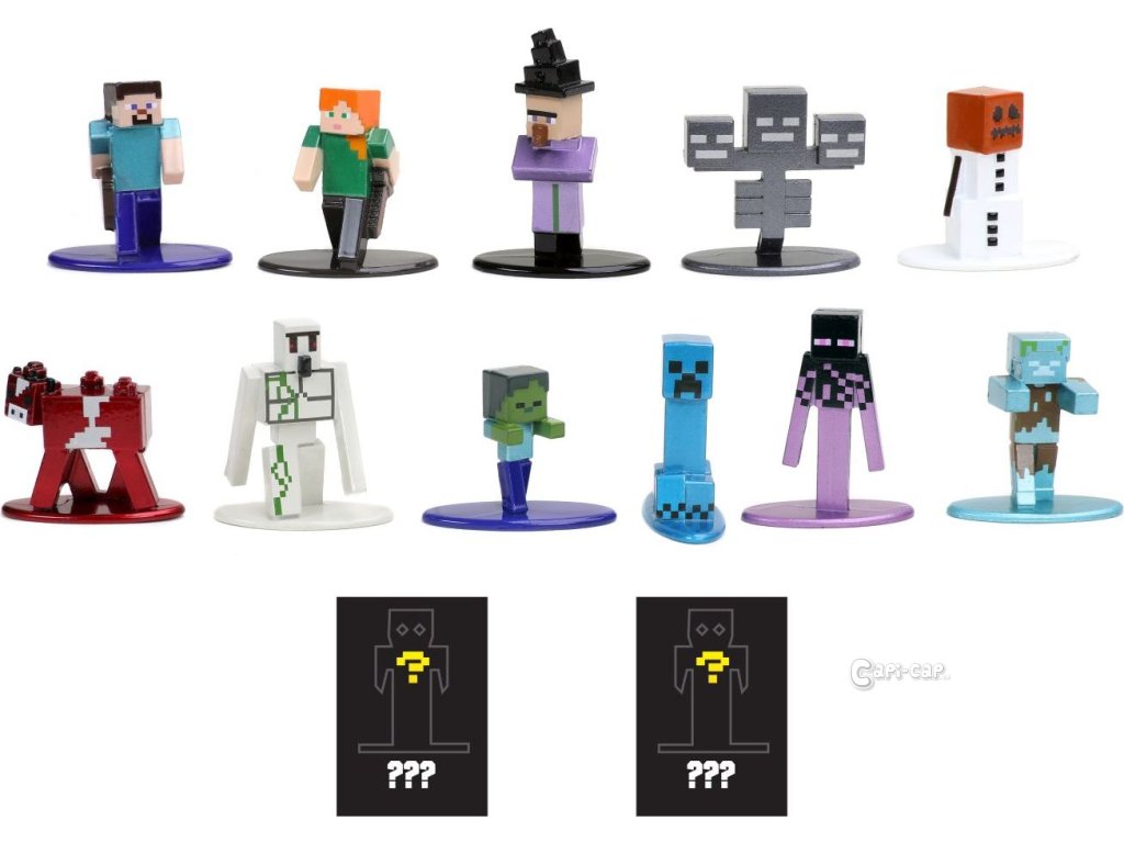 Kovové nanofigurky Minecraft v sáčku. Celkem můžeš nasbírat 13 druhů. Výška figurky 4 cm