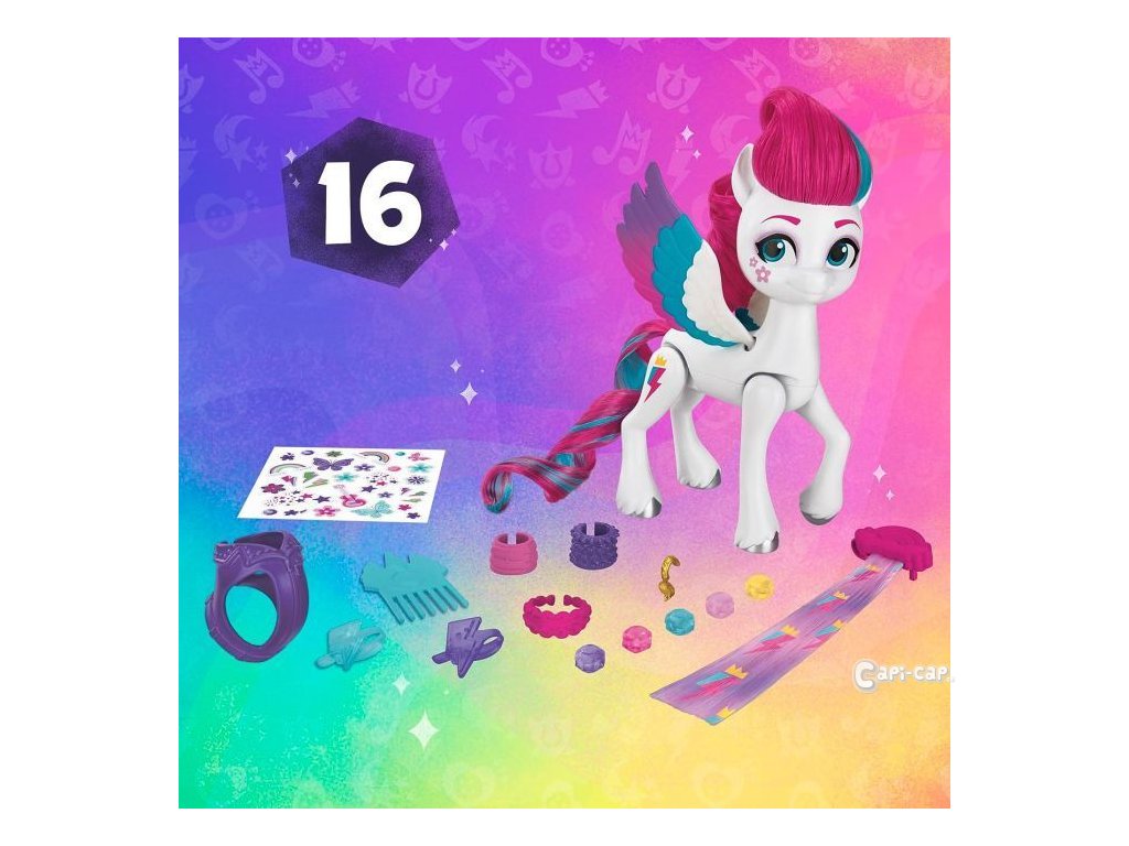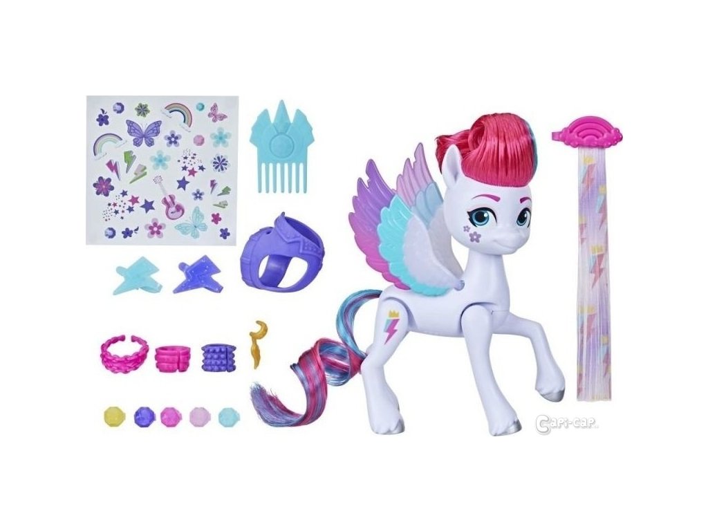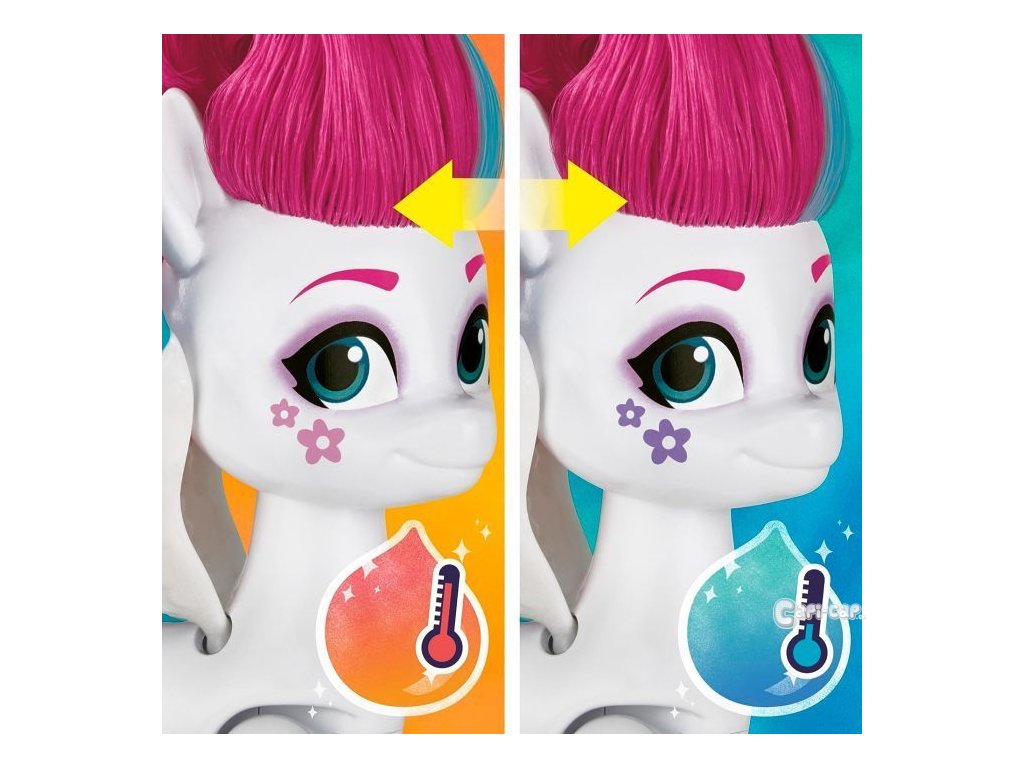 Děti mohou poníkovi upravit hřívu a ocas pomocí prodloužování „vlasů“ s kořínky. Sponkami lze princezně ozdobit její outfit.
