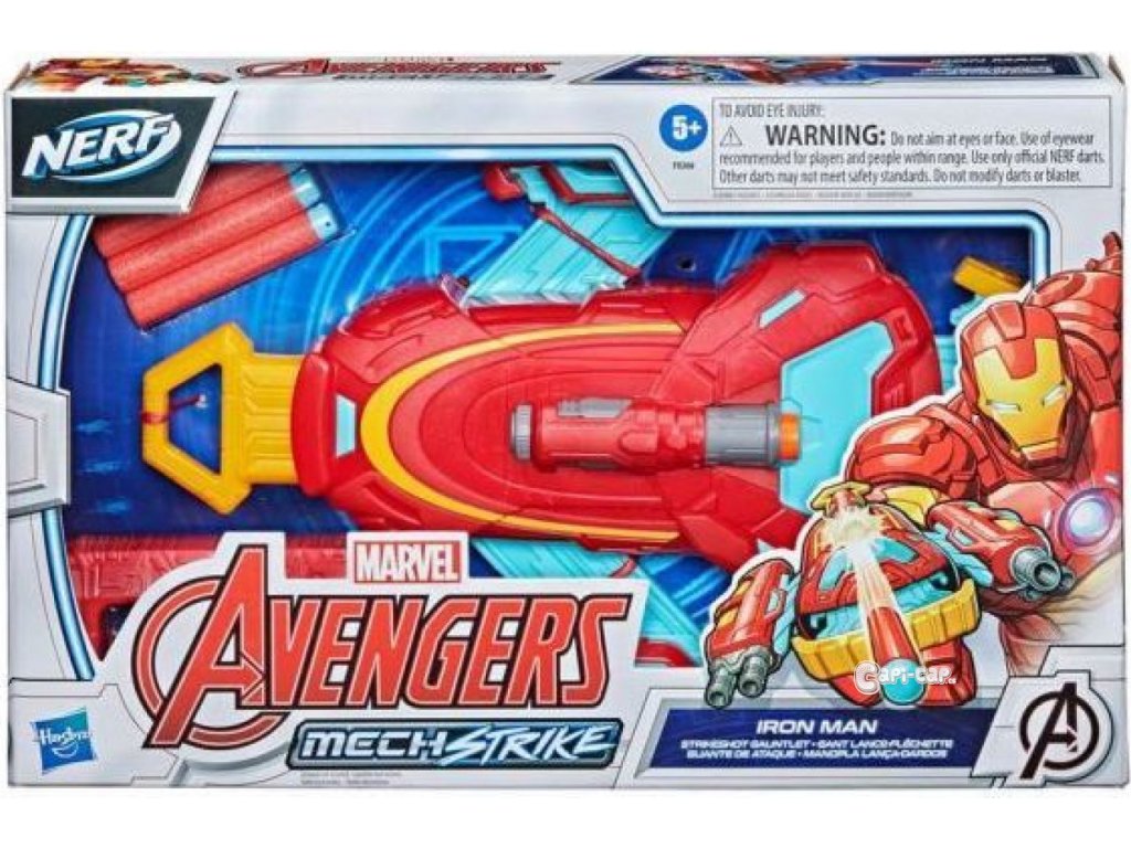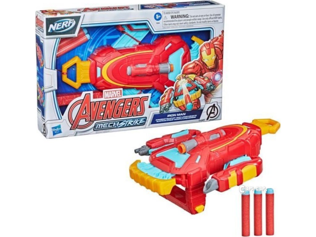 Superhrdinovia Avengers potrebujú najnovšie mocné zbrane na obranu proti intergalaktickým útokom. Tento Iron Man Strikeshot Gauntlet je navrhnutý najgeniálnejšími mozgami Avengers. Vystreľte NERF Dart a zaútočte na drvivú hrozbu! Znovu nabite a opakujte! Iron Mans Strikeshot Gauntlet, ktorý sa nosí na ruke, sa rozširuje a vystreľuje projektily NERF do boja s nepriateľmi.