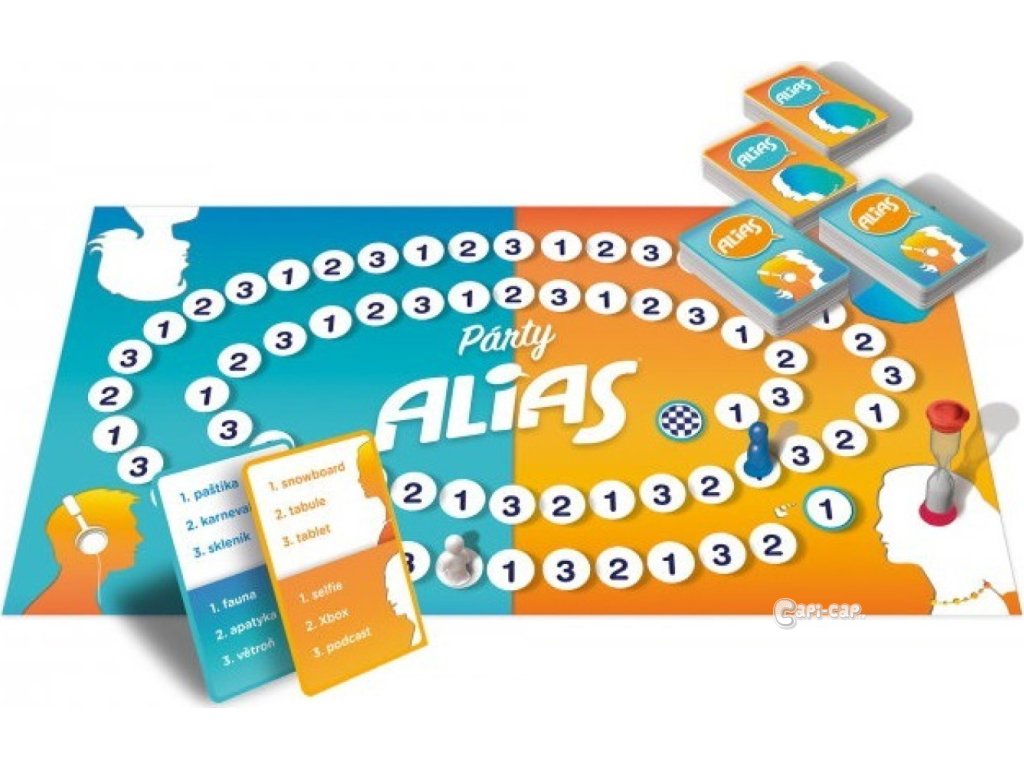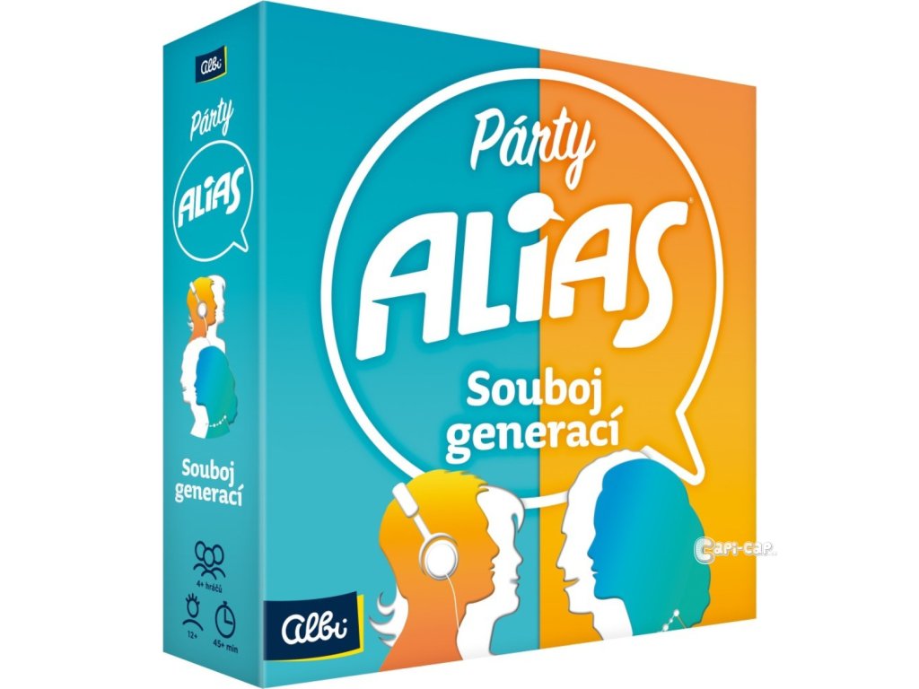 Vyskúšajte novú verziu obľúbenej hry Párty Alias, v ktorej sa proti sebe v slovnom súboji postavia deti a rodičia. Hra Párty Alias Súboj generácií obsahuje: herný plán, 400 kariet obsahujúcich 2 400 slov, presýpacie hodiny, 2 figúrky a pravidlá.