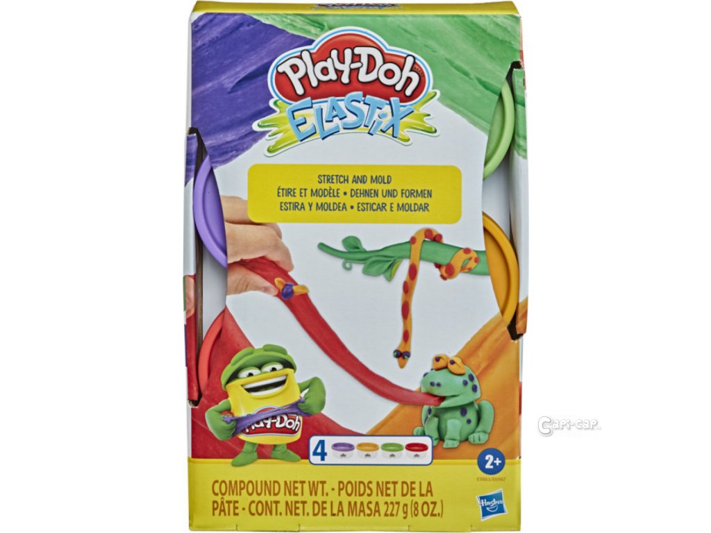 Roztiahnite ju, vytiahnite ju, vytvarujte ju do ľubovoľnej podoby alebo ju použite v ľubovoľnej hracej sade Play-Doh a vymodelujte extra pružné a elastické výtvory, ako sú syrové sendviče alebo nugátové cukríky. Po dokončení je možné tieto výtvory spojiť so štandardnými modelínami Play-Doh. Vek: 2+