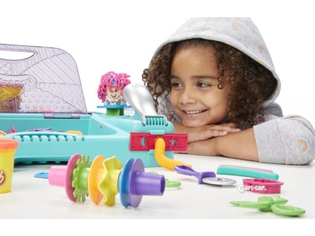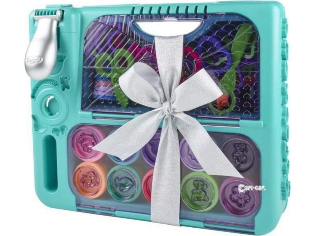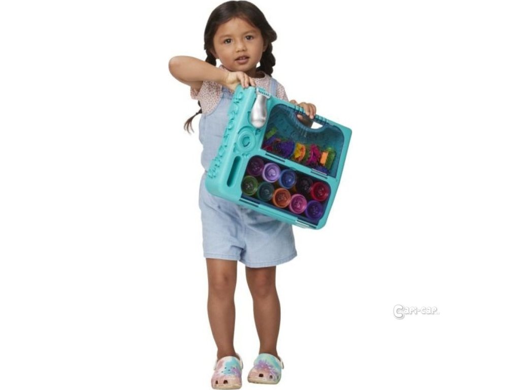 V tejto univerzálnej sade na cesty čaká deti množstvo doplnkov a klasické Play-Doh tégliky s modelovacou hmotou! Nájdete tu Továreň na zábavu a Kaderníctvo, veľa vykrajovačov a najrôznejších vychytávok, tak sa nebojte popustiť uzdu fantázii. Na všetko je tu množstvo priestoru, takže tégliky s modelínou môžete dať do pripravených otvorov, formičky a vykrajovače do zásobníka, na ktorom je kryt s textúrou, s ktorým si užijete veľa zábavy pri vytváraní parádnych vzorov. Kompletné balenie je praktické, zmestí sa vám doň všetko potrebné a vďaka kompaktnej rukoväti si ho môžete vziať pohodlne na cesty a spestriť si tak víkend napríklad u babičky!