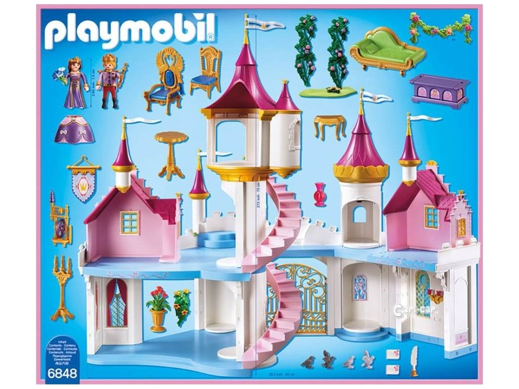 Trojposchodový zámok so schodiskom až do veže má výšku 70cm a po otvorení do strán dĺžku 82cm.
