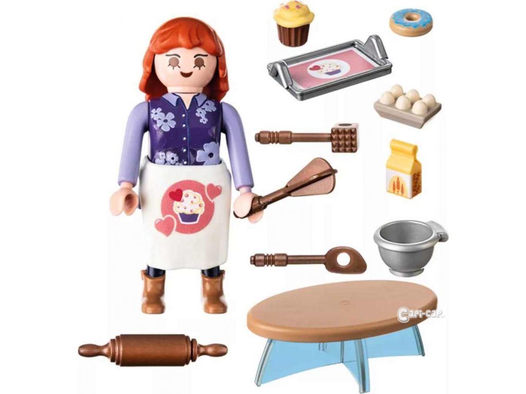 Kromě různých pečicích potřeb obsahuje herní sada vajíčka, košíčky a koblihy pro kulinářské hry na hraní rolí v kuchyni.