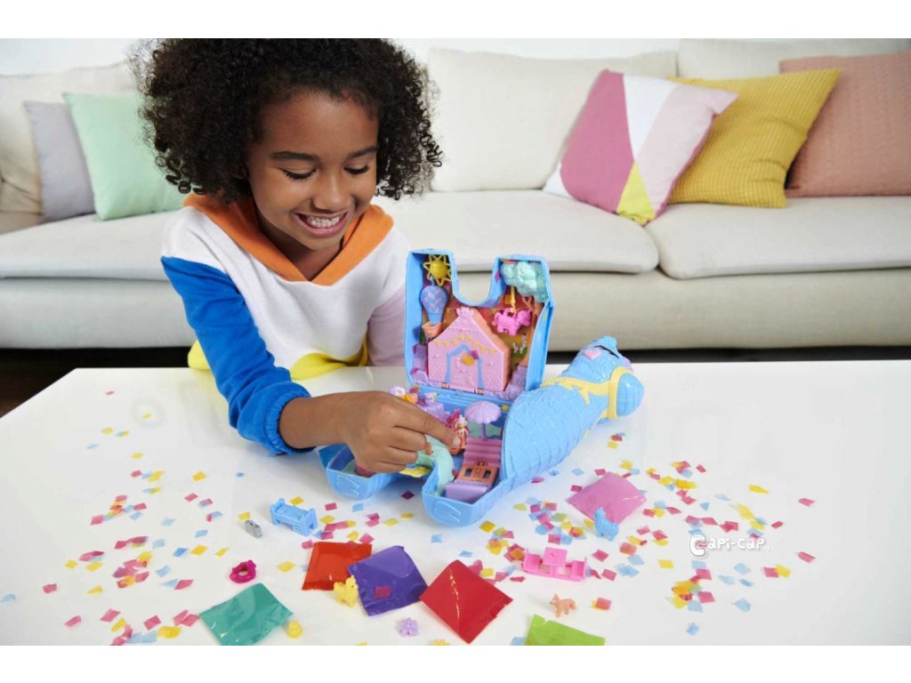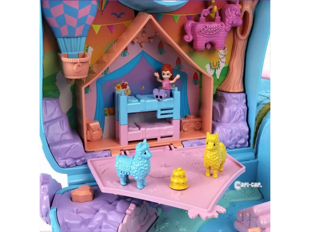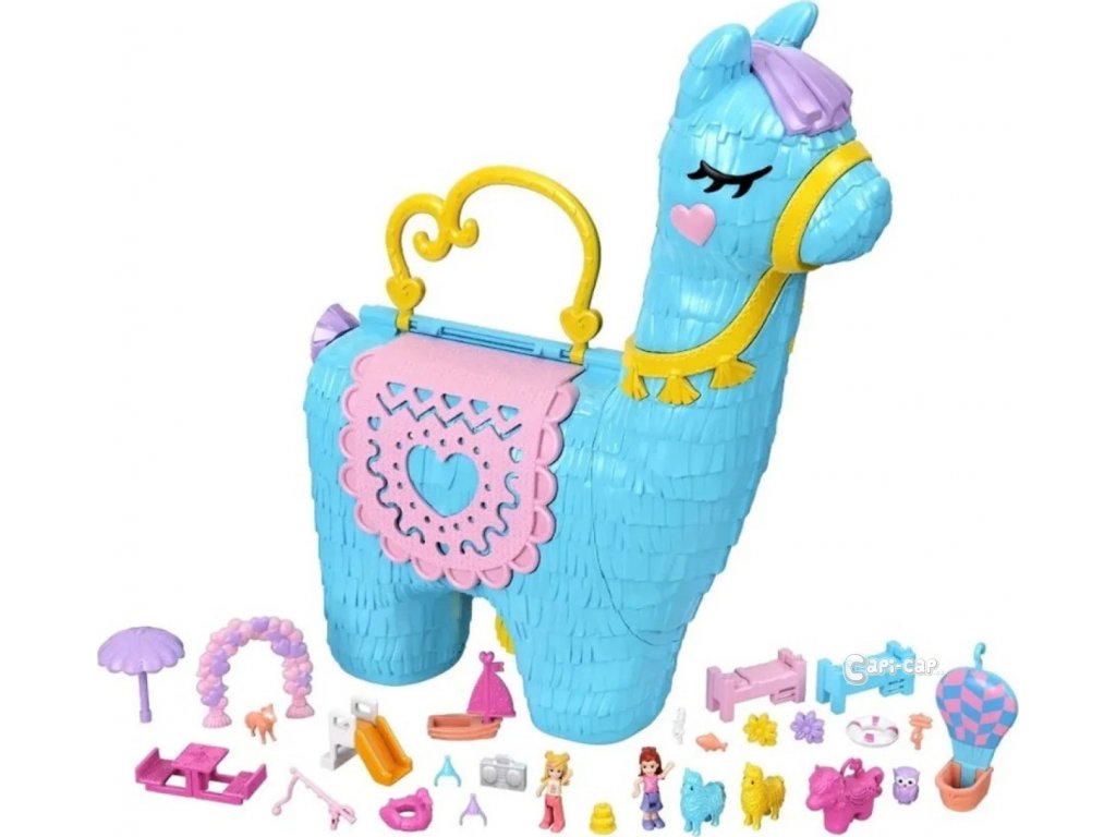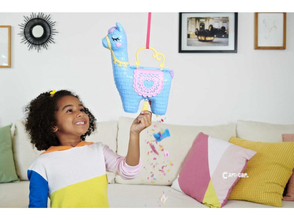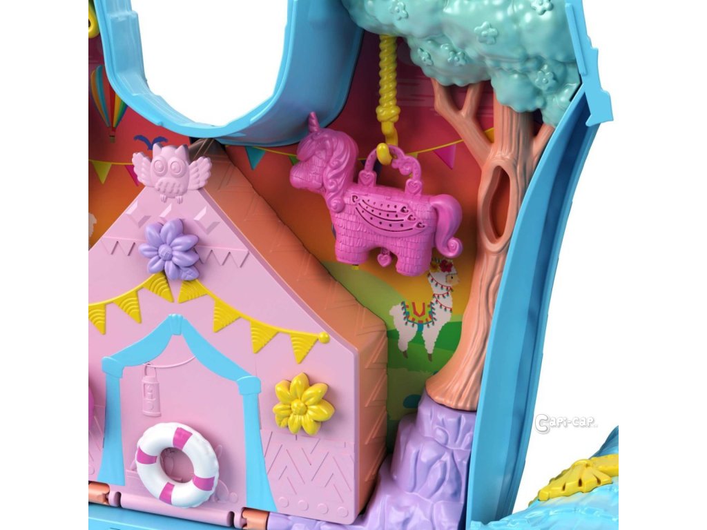 Kompaktní herní sada ve tvaru rozkošné lamy má rukojeť pro přenosné hraní. Zatáhněte za zlatý střapec a sledujte, jak z herní sady vypadá barevný proud konfet a více než 25 překvapení. Otevřete herní sadu a odhalte zábavné venkovní dobrodružství se 2 mikropanenkami a spoustou zábavných věcí, které můžete dělat a prozkoumávat! Otevřete stan, hrajte na vodní překážkové dráze, pověste piñatu na strom a další. Mnohá překvapení mají funkci Pop & Swap kolíčku, která dětem umožňuje zapojit dílky do různých oblastí kompaktu a získat tak nekonečné možnosti hraní!