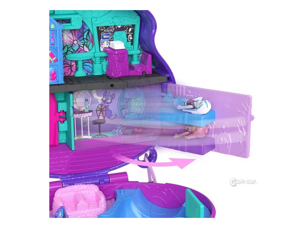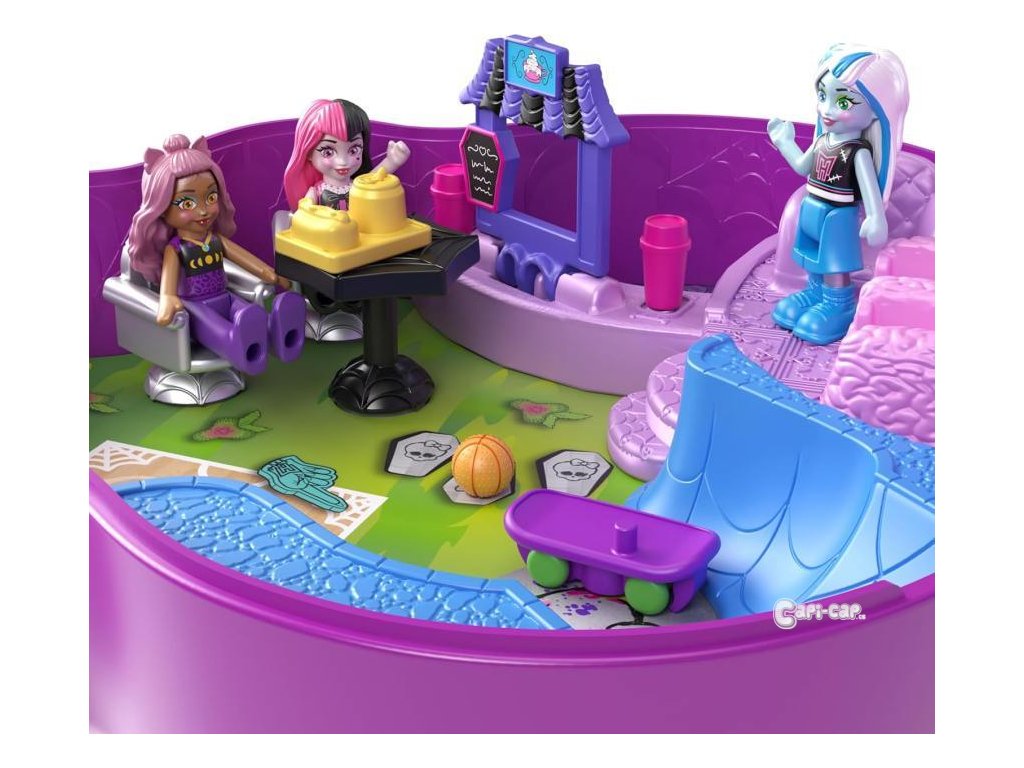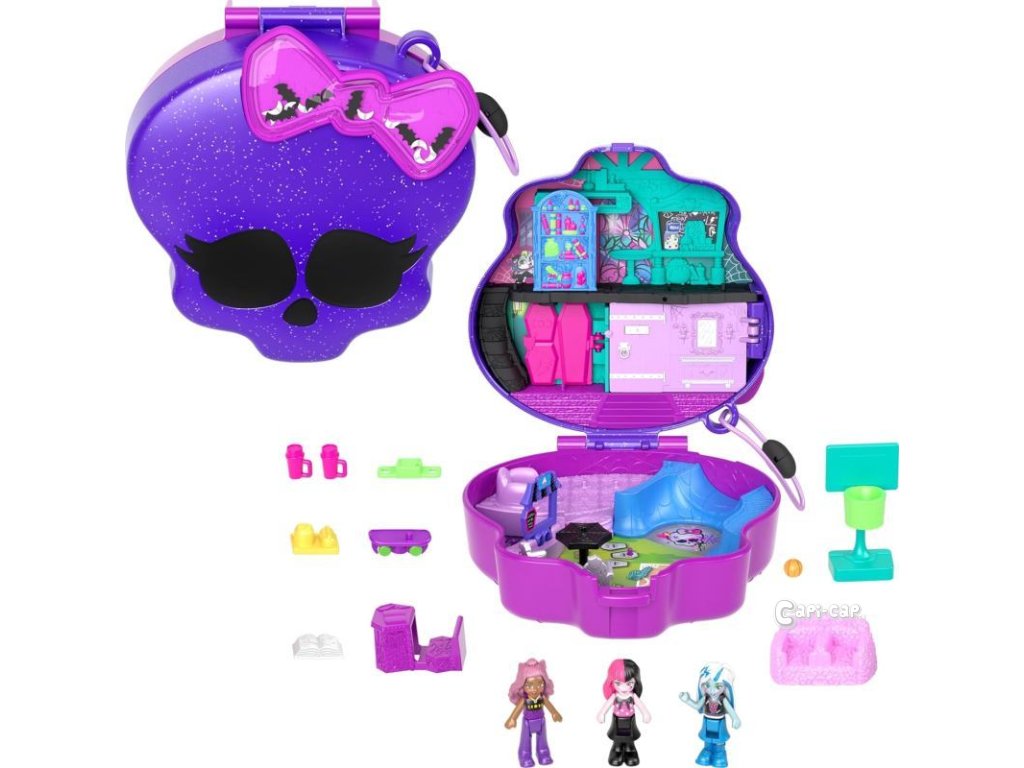 Pobavte se se svými oblíbenými ghúly v tomto kompaktu pro spolupráci Monster High & Polly Pocket! Ikonický exteriér lebky obsahuje šejkrovou mašli plnou třpytivých netopýrů a otevírá se a odhaluje strašidelný skatepark a střední školu. Vyděste si zábavu se třemi oblíbenými gholy Monster High: Draculaura, Clawdeen Wolf a Frankie Stein v mikropodobě + navíc 10 tematických děsivých doplňků. Posuňte knihovnu a odhalte fantastické překvapení, předveďte nějaké nechutné triky ve skateparku nebo si zahrajte rakevový míček s ostatními ghúly! Tento strašidelně roztomilý kompakt je ideální pro fanoušky Monster High a Polly Pocket. Pobavte se se svými oblíbenými mikro ghúly v tomto kompaktu ve spojení Monster High x Polly Pocket! Fanoušci si mohou užít 3 mikro panenky Monster High a 10 děsivých doplňků pro úžasné dobrodružství! Rozkošný exteriér lebky obsahuje třpytivou šejkrovou mašli plnou netopýrů a otevírá se do naprosto fantastického skateparku, kde mohou ghúlové předvádět své triky. Oblíbené panenky Draculaura, Clawdeen Wolf a Frankie Stein jsou strašidelně roztomilé s osobitým vzhledem! Děsivé doplňky zvyšují zábavu s nábytkem a školními potřebami! S tolika funkcemi, které lze odhalit a zaujmout, je sběratelská sada skvělým dárkem pro děti od 4 let, zejména pro fanatiky Monster High!
