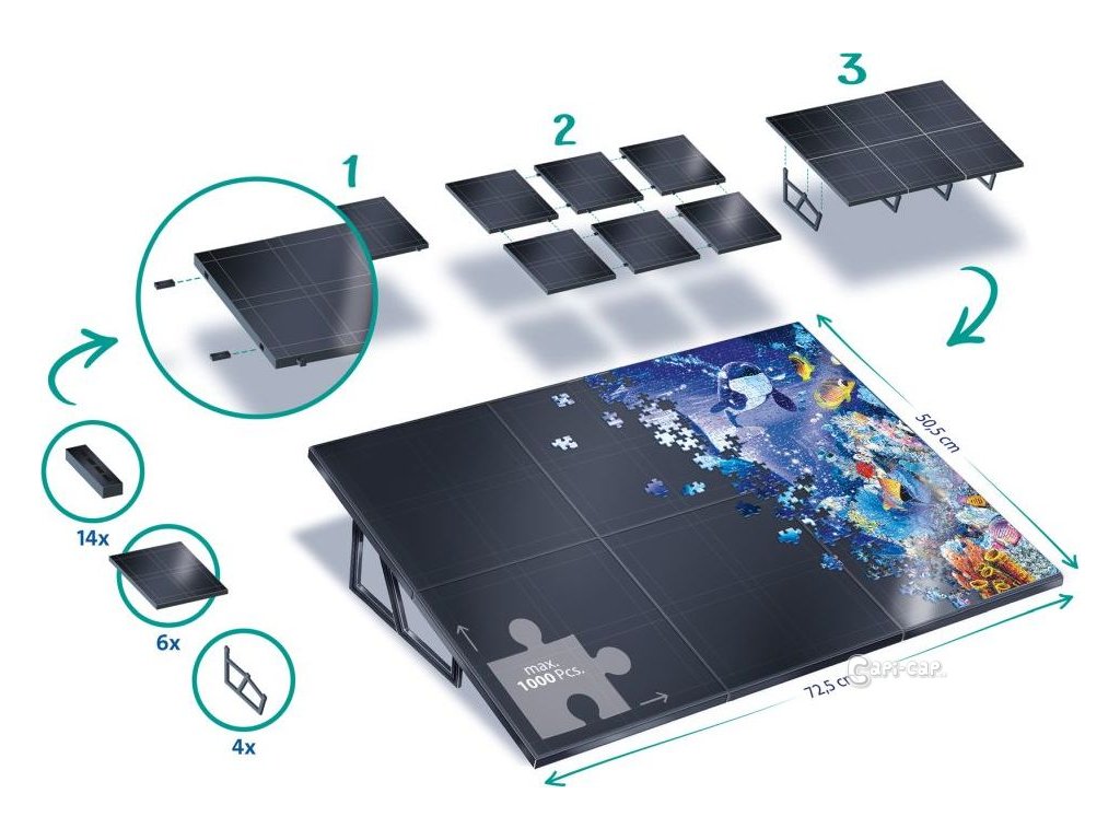 Polohovacia podložka na pohodlné skladanie puzzle. Nastavte si svoj vlastný sklon, ktorý vám pri skladaní puzzle bude vyhovovať.