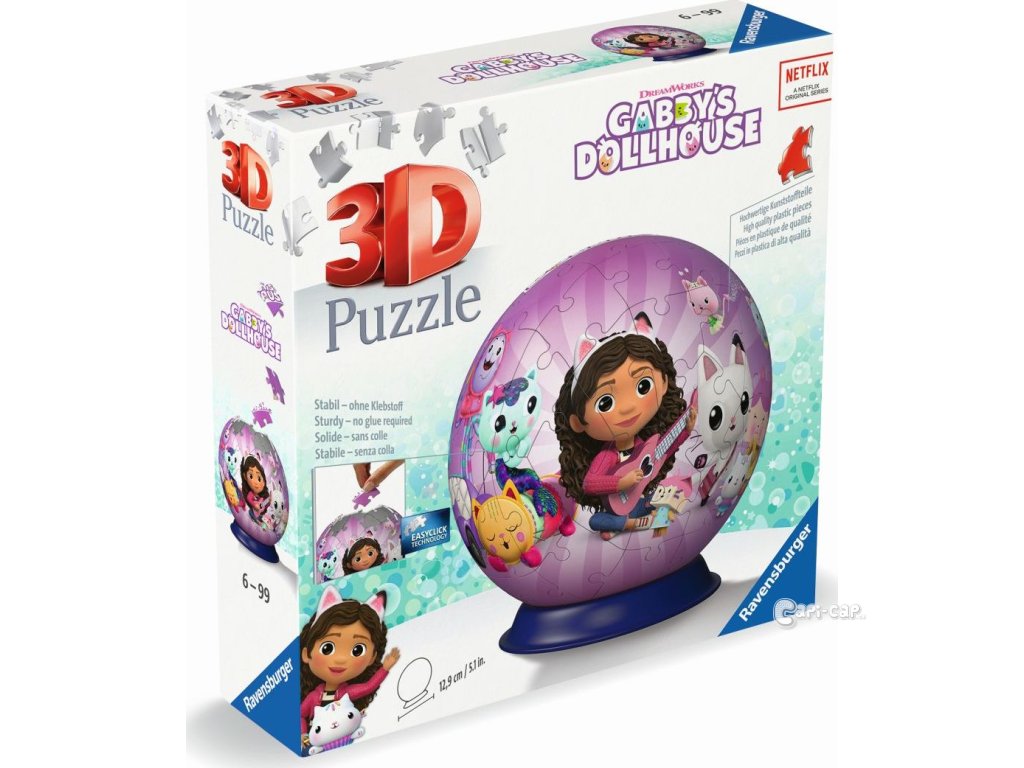 Postavte si svůj 3D puzzle-ball s roztomilým motivem Gabby's Dollhouse z plastových dílků technologie EasyClick.