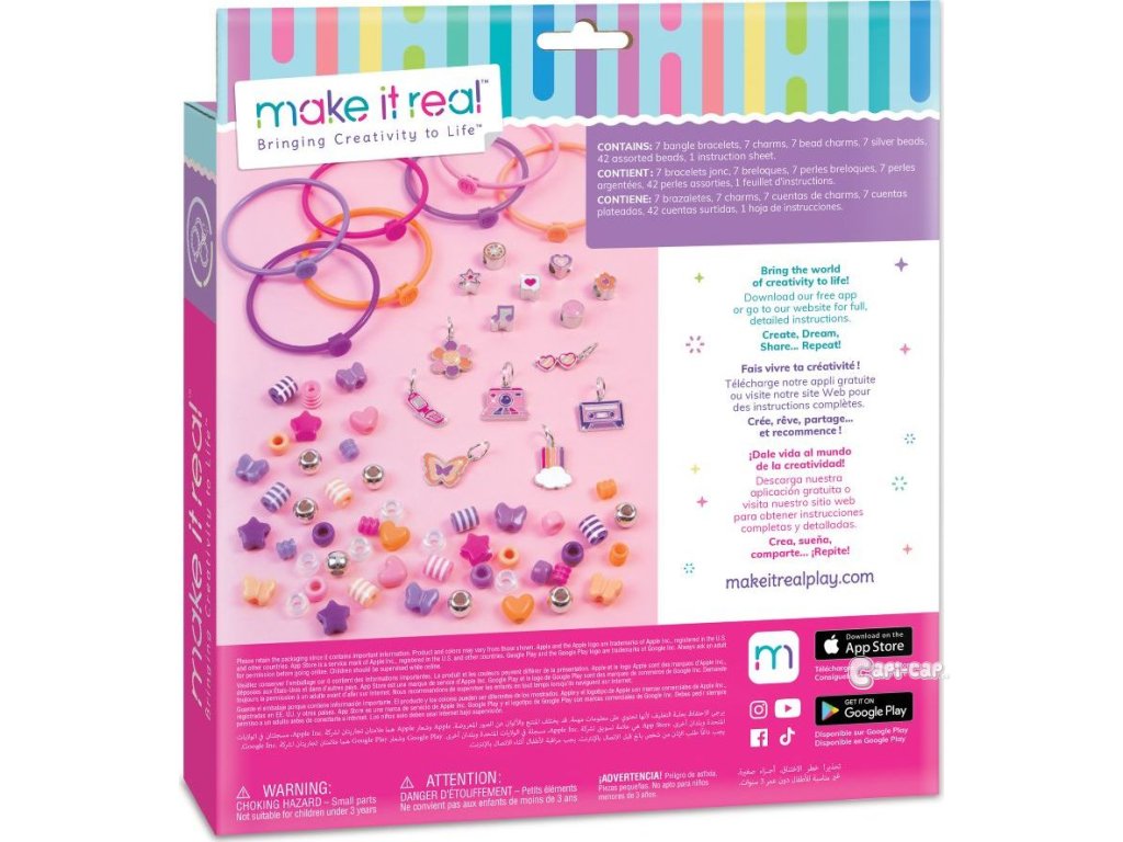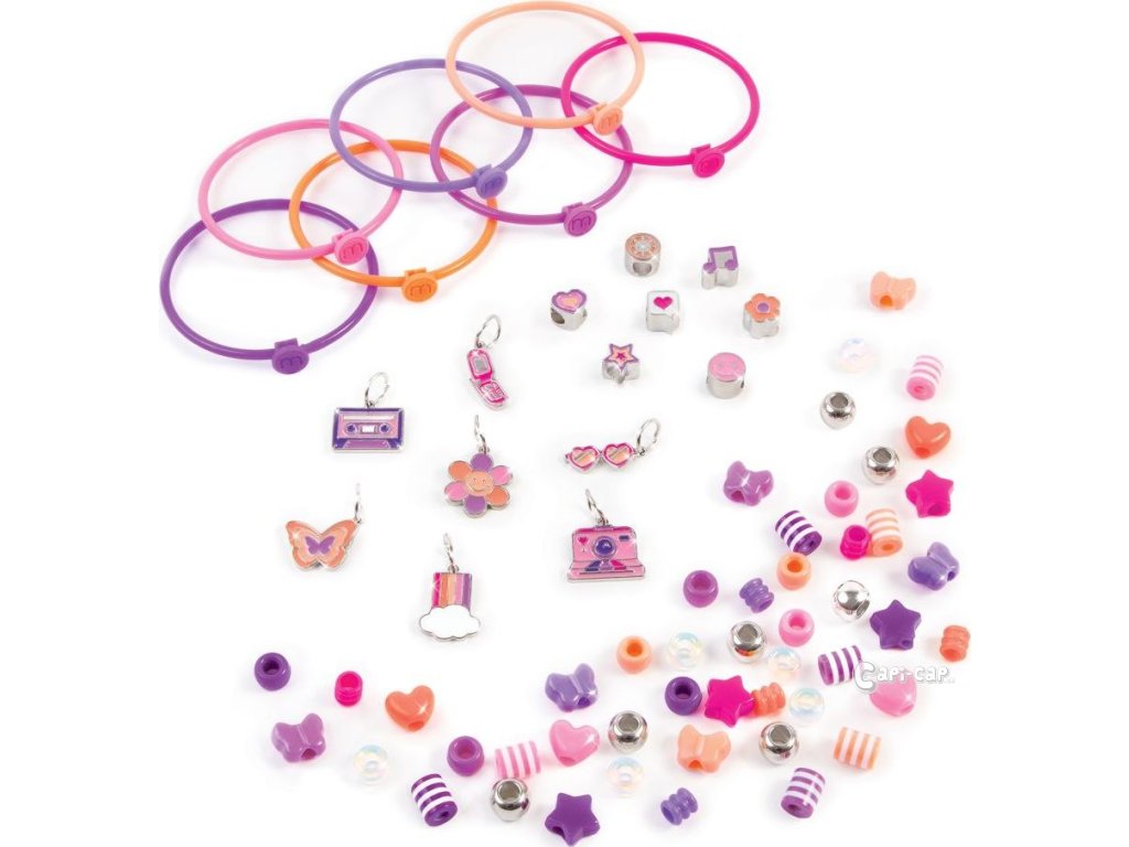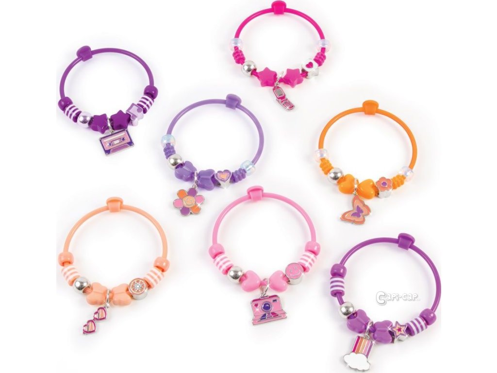 Vytvořte si 7 náramků s módními korálky a kovovými přívěsky. Náramky se snadno otevírají a zavírají, což umožňuje rychlou přeměnu náramku dle nálady. Zábavné retro přívěšky přinášejí mamince nostalgické dny a mladší generaci ten správný nádech trendů 80. a 90. let! Tato DIY sada je skvělým dárkem k narozeninám, k svátku nebo jen tak! Ideální pro děti od 6 let, které chtějí prozkoumat svou kreativitu a vyjádřit svůj styl. Sada obsahuje 7 náramků, 7 přívěšků, 7 korálkových přívěšků, 7 stříbrných korálků, 42 korálků a instrukce.