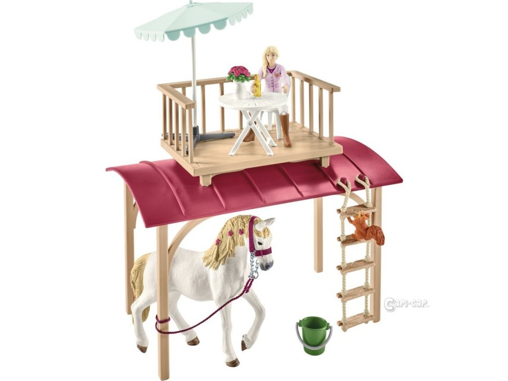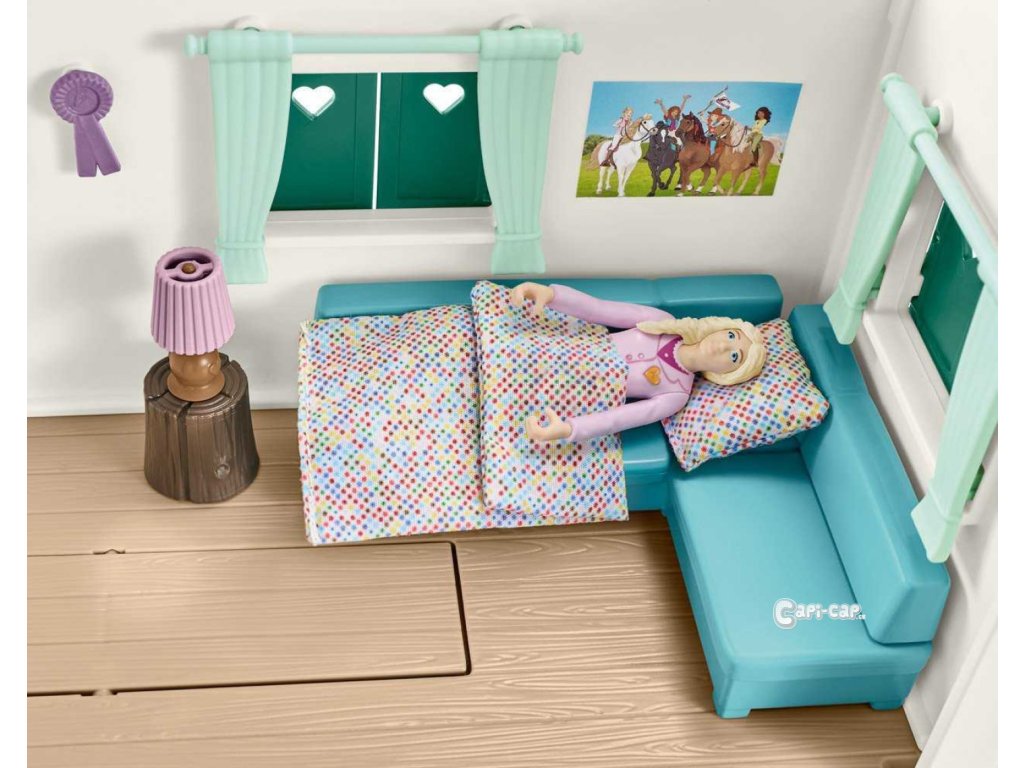Za hodinu sa dostav na tajné miesto stretnutia... Kde by to len mohlo byť? Samozrejme v karavane z kolekcie Schleich® HORSE CLUB! Je ideálny na organizovanie tajných schôdzok. Keď chceš napríklad naplánovať večierok s prekvapením pre kamaráta v jazdeckej stajni. Alebo maľovať jazdecké klobúky. Je to tiež ideálne miesto na spoločné posedenie na strešnej terase v lete alebo na pohovke v zime. Ako každé správne veliteľstvo má aj karavan špeciálnu tajnú priehradku. Musíš si však sám zistiť, kde sa schováva a čo v nej je. Alebo už to vieš? Sada obsahuje: 1× plne pohyblivá figúrka, 1× andalúzska kobyla, 1× veverička, 1× stajňa, 2× lampáš, 1× rebrík, 1× stolička, 1× slnečník, 1× vonkajší stolík, 1× pohovka, 1× stolík do obývacej izby, 1× lampa, 1× okenný kvetináč, 1× povrazový rebrík, 2× ocenenie pre víťaza, 1× sedlo, 1× uzda, 1× opraty, 1× ohlávka, 1× stojan na seno, 1× hrebeň, 1× kefa na hrebelcovanie, 1× balík slamy, 1× vedierko, 1× jablko, 2× vankúš, 1× ohnisko, 1× fľaša, 2× vidlica na opekanie s klobásou, 2× hrnček, 2× šálka, 1× miska , 1× kvetináč, 3× drevený klát, 1× samolepka, 1× návod na zostavenie. Rozmery: 23,1 x 39 x 16,6 cm Vek: 3+Buďte prvý, kto napíše príspevok k tejto položke.