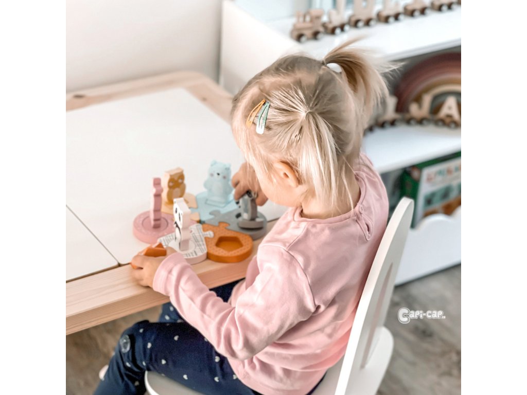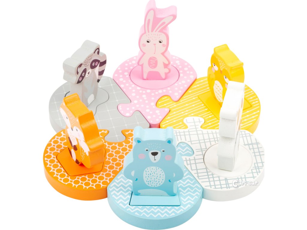 Každé zvíře má své místo! Při této hře v jednoduchých pastelových barvách je zapotřebí zručnost a jemná motorika. Nejenže je třeba správně roztřídit a vložit geometrické tvary, ale také najít správné dílky skládačky, protože pro každé zvíře je zde okvětní lístek v odpovídajících barvách!Který fanoušek puzzle dokáže správně roztřídit všechna zvířátka a dílky? Hlavní vlastnosti: obsahuje 12 dílůmoderní pastelové provedeníprocvičuje jemnou motorikuDodatočné parametre