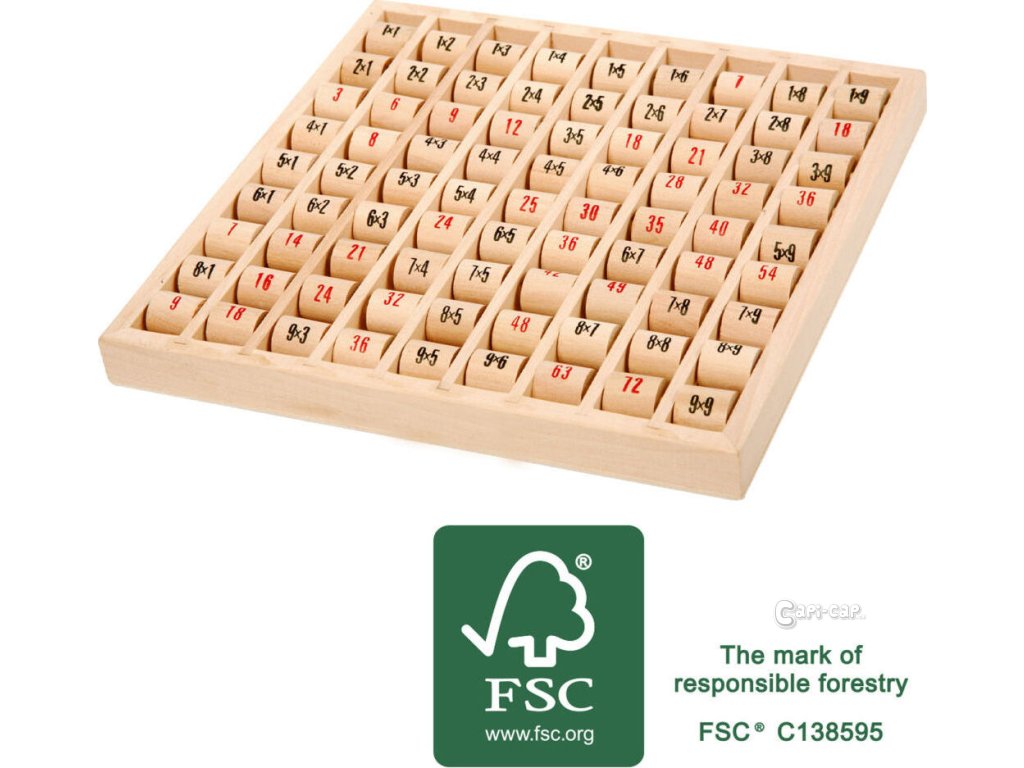 Učební pomůcka, která dětem pomáhá naučit se malou násobilku. Otáčejícími se válečky můžete měnit zadání příkladu nebo nalézt jeho výsledek. Hlavní vlastnosti: vyrobené ze 100% certifikovaného FSC® dřeva Značka a certifikát FSC® (Forest Stewardship Council) zaručuje, že dřevo, ze kterého byl produkt vyroben, nebylo vytěženo nelegálně a pochází z lesů obhospodařovaných šetrným či přírodě blízkým způsobem, ve kterém jsou dodržovány přísné environmentální a sociální požadavky. Značka FSC® na výrobku znamená, že svým nákupem pomáháte chránit lesy a podporujete šetrné, odpovědné či přírodě blízké hospodaření, díky kterému jsou naše lesy stabilnější, zdravější, mají přirozenou druhovou skladbu a lépe odolávají negativním následkům klimatických změn.Dodatočné parametre