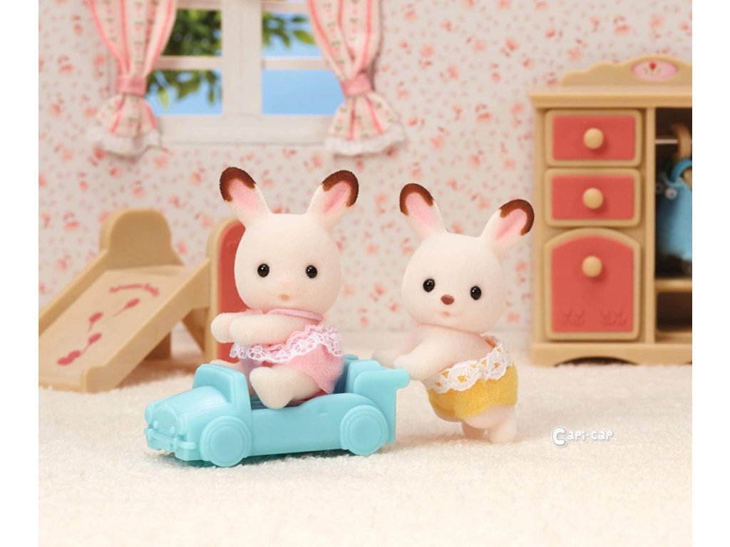 Dvojčata z rodiny čokoládových králíčků mají charakteristické roztomilé čumáčky a čokoládově zbarvené uši. Sada obsahuje dvě malé figurky dvojčat Breeze a Kabe pokryté měkkým semišovým kožíškem a také vozítko ve tvaru autíčka. Dvojčata jsou oblečena do zábavných, barevných oblečků s krajkou. Vozítko lze kombinovat s vozítky z jiných sad s dvojčaty. Hračky Sylvanian Families rozvíjejí představivost a podporují děti k hraní rolí. Hraní s figurkami Sylvanian Families rozvíjí kreativitu a učí emoce prostřednictvím vytváření a vyprávění příběhů na základě každodenních zkušeností a pozorování světa. Vyznačují se nejvyšší kvalitou a výjimečným důrazem na detaily. Figurky Sylvanian Families mají pohyblivou hlavu. Oblečení je vyrobeno tak, aby se dalo opakovaně svlékat a oblékat. Baleno v krabičce. Rozměry balení: 12 x 7,5 x 3,5 cm. Věk: 3+