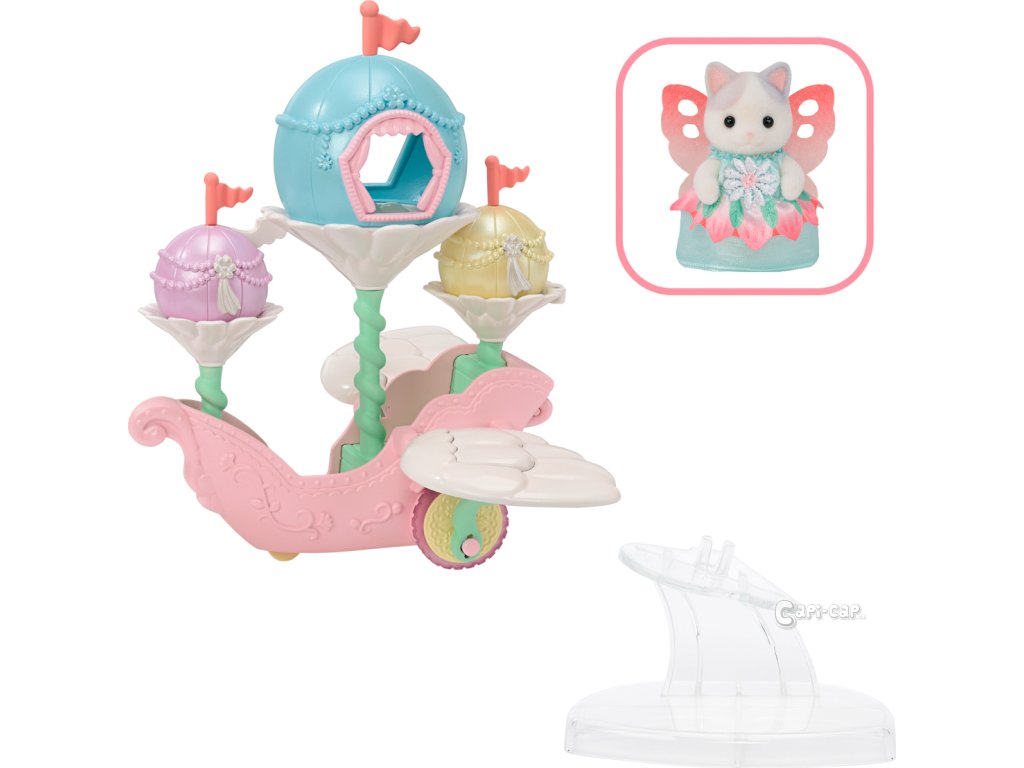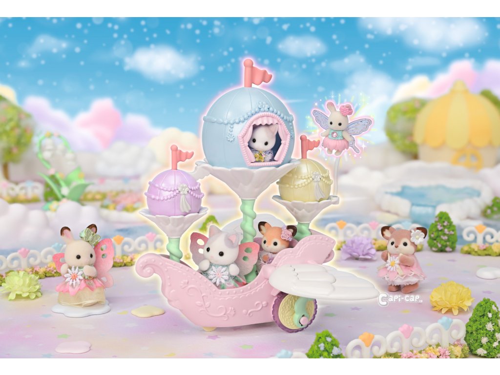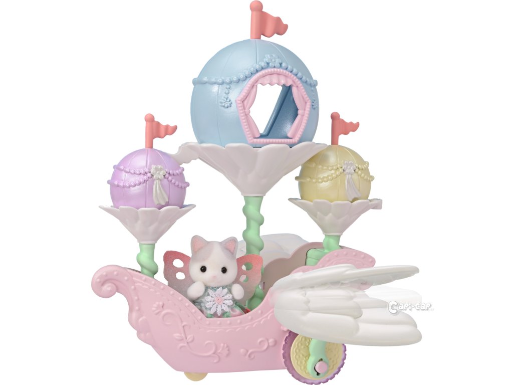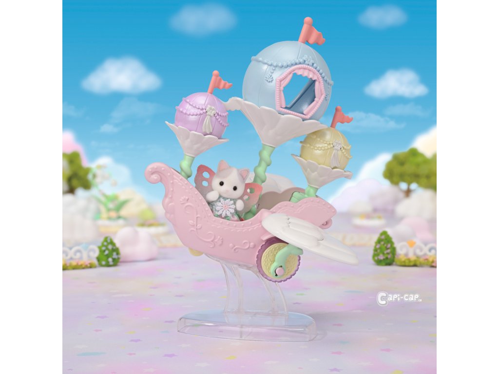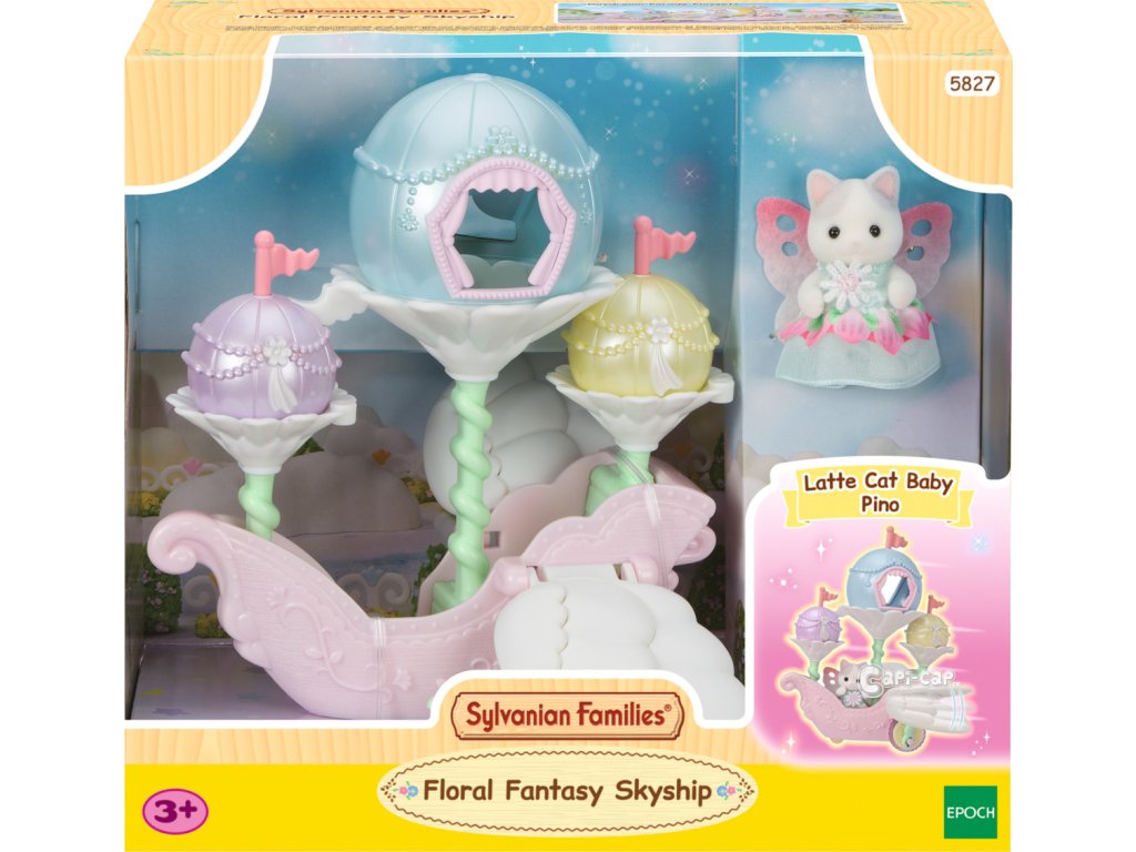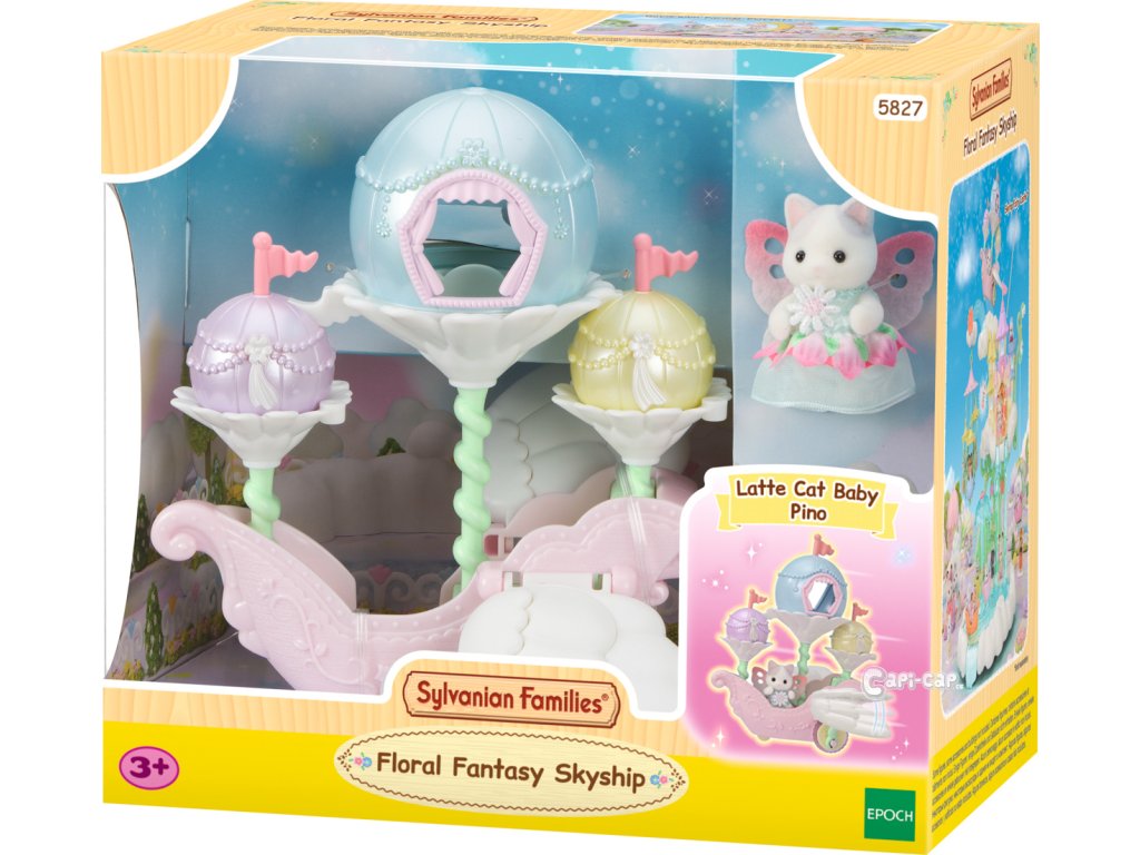 Létající loď květinových víl vás zve na cestu do nebeského, magického světa. Sada obsahuje roztomilou figurku miminka Pino Fontana z rodiny Latte koček v kostýmu květinové víly. Létající vozidlo je vybaveno křídly, která se pohybují nahoru a dolů, když vozidlo jede po rovině. Vozidlo pojme několik baby figurek, přičemž jednu z nich lze připevnit na speciální úchyt, což vytváří dojem, že figurka se vznáší nad vozidlem. V květinových kalichách, které vyrůstajících přímo z vozidla se nacházejí barevné balónky, z nichž jeden slouží jako komnata, do které se vejde figurka květinové víly Sylvanian Families. Létající vozidlo může být skvělým nápadem na dekoraci domu nebo bytu. Hračky Sylvanian Families podporují představivost a vybízejí děti k hraní rolí. Hra s figurkami rozvíjí kreativitu a učí emocím vytvářením a vyprávěním příběhů založených na každodenních zážitcích a pozorování světa. Vyznačují se nejvyšší kvalitou a výjimečným důrazem na detaily. Figurky Sylvanian Families mají pohyblivé končetiny a hlavu. Baleno v krabičce. Rozměry balení: 18 x 20 x 12,5 cm. Věk: 3+