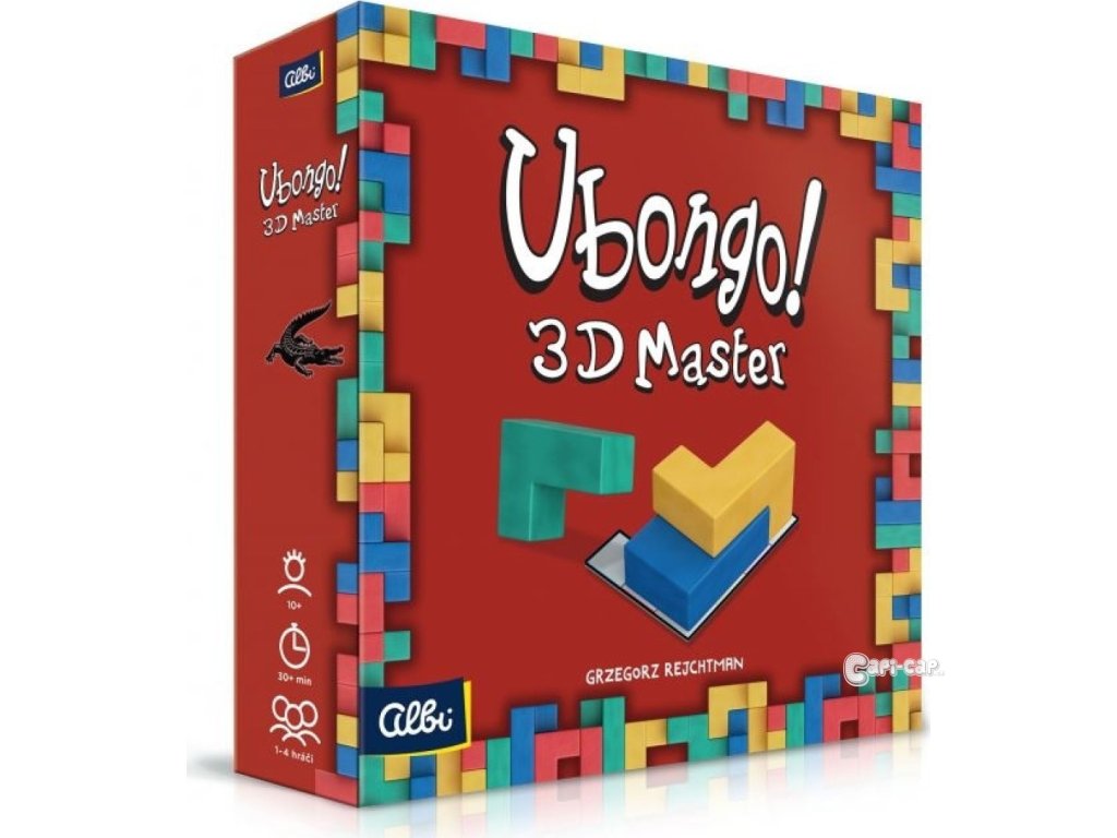 V rodinnej hre Ubongo 3D máte za úlohu zakryť prázdne polia na karte trojrozmernými dielikmi do výšky dvoch poschodí správne na seba. V rodinnej hre Ubongo 3D Master máte za úlohu zakryť prázdne polia na karte trojrozmernými dielikmi do výšky dvoch poschodí. Komu sa podarí umiestniť dieliky správne na seba? Ako odmena na vás čakajú drahokamy. Víťazom sa stáva hráč s najhodnotnejšou zbierkou drahokamov. Hra Ubongo 3D Master obsahuje: 36 herných kariet (s 504 zadaniami), 40 herných dielikov, 58 drahokamov, desaťstennú kocku, plátené vrecúško, zošit s riešeniami a pravidlá.